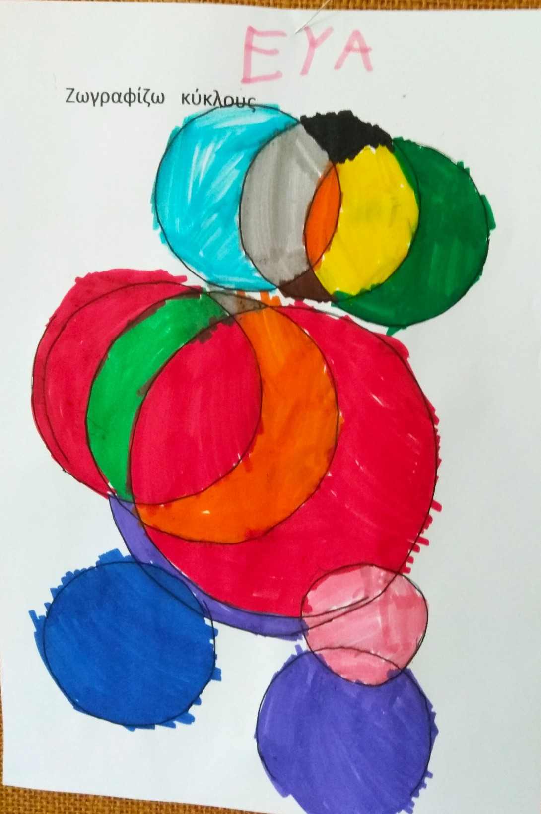 Αποδόσαμε και εμείς τόσο ομαδικά όσο και ατομικά την <<Χαρά της ζωής>>,χρησιμοποιώντας κύκλους και όμορφα χρώματα.