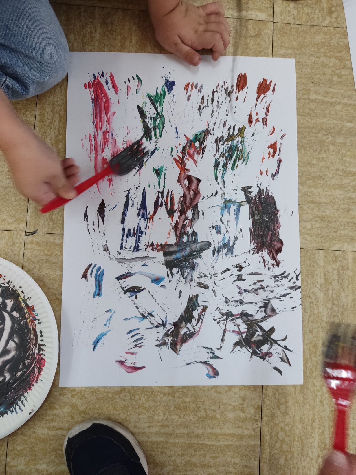 Τα ανακατεύουμε όλα μαζί στο τέλος να δούμε τι θα γίνει και με ένα πηρούνι δημιουργούμε το δικό μας έργο ζωγραφικής.