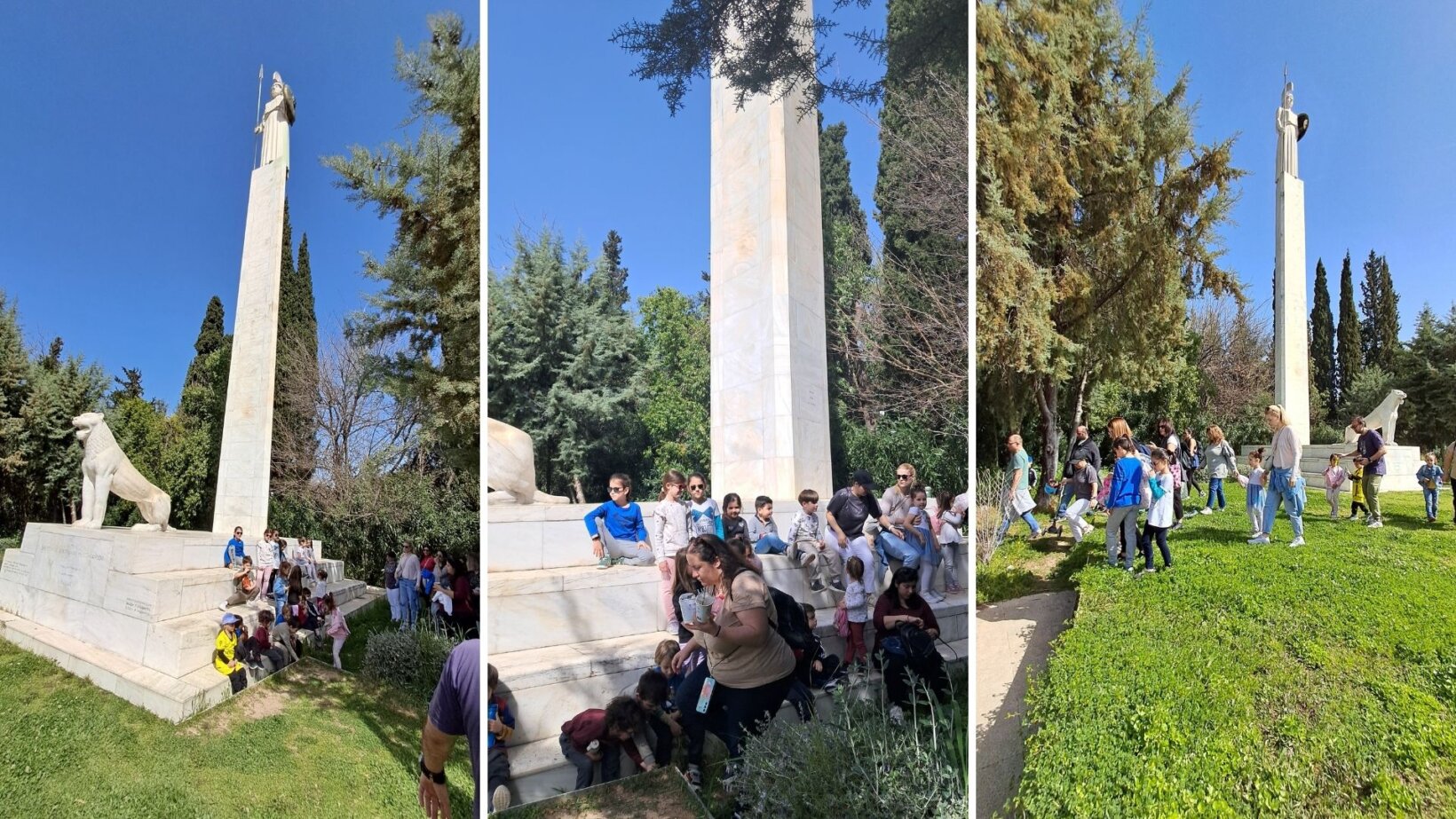 Συναντηθήκαμε στο άγαλμα της θεάς Αθηνάς, μνημείο των πεσόντων Βρετανών, Αυστραλών και Νεοζηλανδών στο Β΄ Παγκόσμιο Πόλεμο. Είναι έργο του γλύπτη Βάσου Φαληρέα και των αρχιτεκτόνων Φ. και Ε. Κυδωνιάτη (1952).