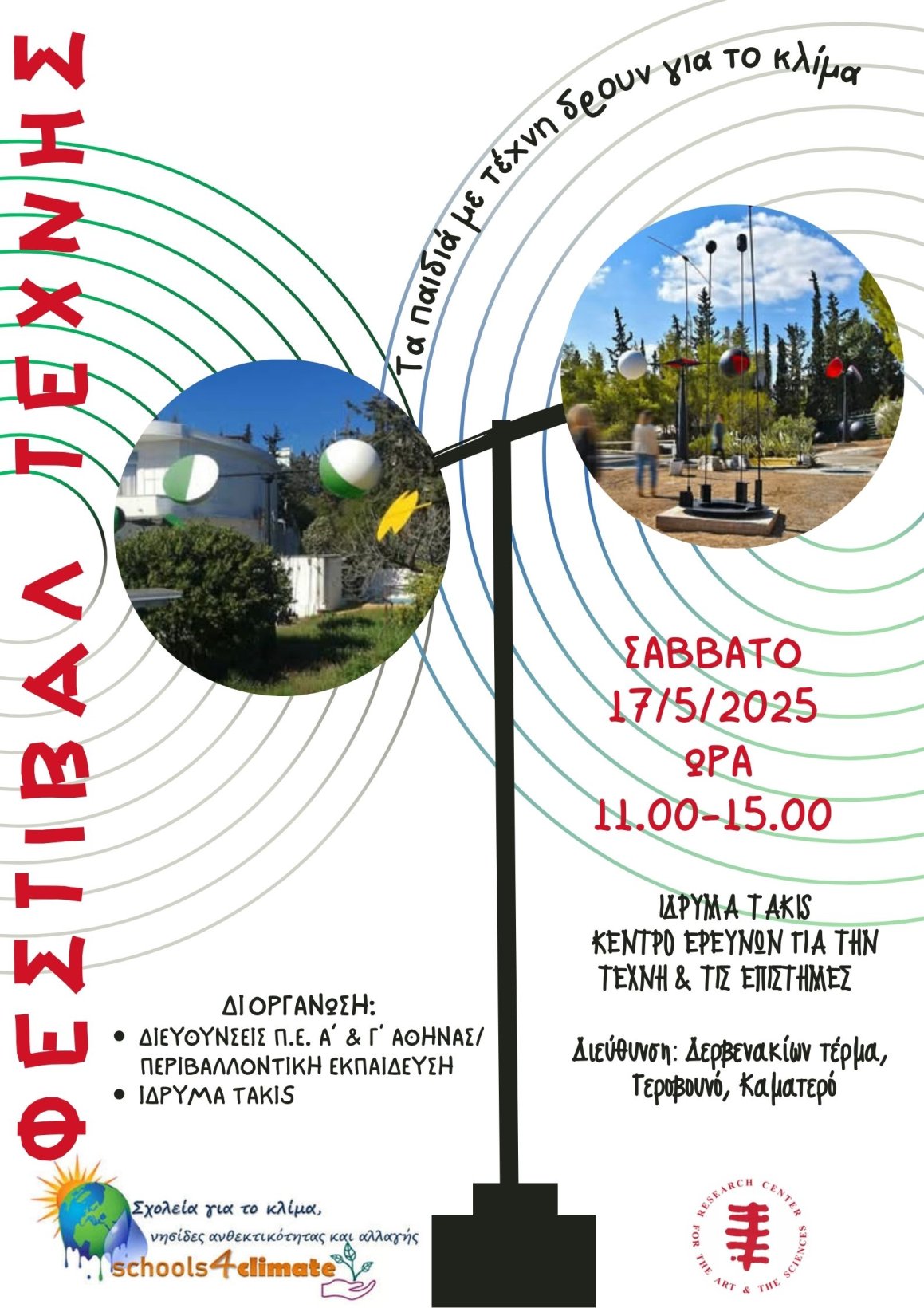 Οι Διευθύνσεις Π.Ε Α΄ και Γ΄Αθήνας σε συνεργασία με το Ίδρυμα Takis – Κέντρο Ερευνών για την Τέχνη & τις Επιστήμες, σας προσκαλούν στην Έκθεση Έργων των Σχολείων στο πλαίσιο του Φεστιβάλ Τέχνης