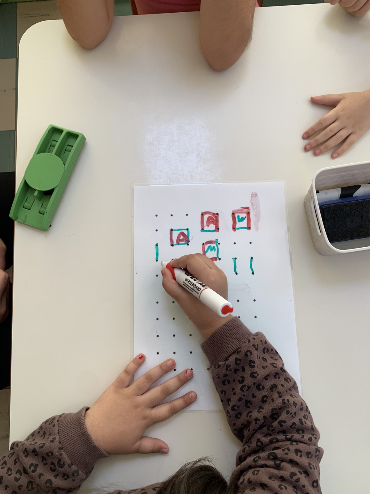 Παίξαμε στον πίνακα “dots and boxes” και ύστερα πλαστικοποιήσαμε κάποια ταμπλό, ώστε να μπορούν τα παιδιά να παίζουν σε δυάδες την ελεύθερη ώρα.