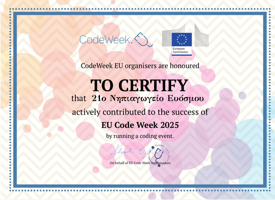 Επίσης, παίξαμε και με τα ρομποτάκια και πήραμε μέρος στην Ευρωπαϊκή Εβδομάδα Προγραμματισμού! Τα παιδιά συνεργάστηκαν για να προγραμματίσουν τα ρομποτάκια μας και να τα καθοδηγήσουν σε διαφορετικές συμπεριφορές, αποφεύγοντας τις λάθος συμπεριφορές. Μέσα από αυτό το διασκεδαστικό παιχνίδι, έμαθαν να δουλεύουν ως ζευγάρια, να μοιράζονται ιδέες και να επιλύουν προβλήματα μαζί.