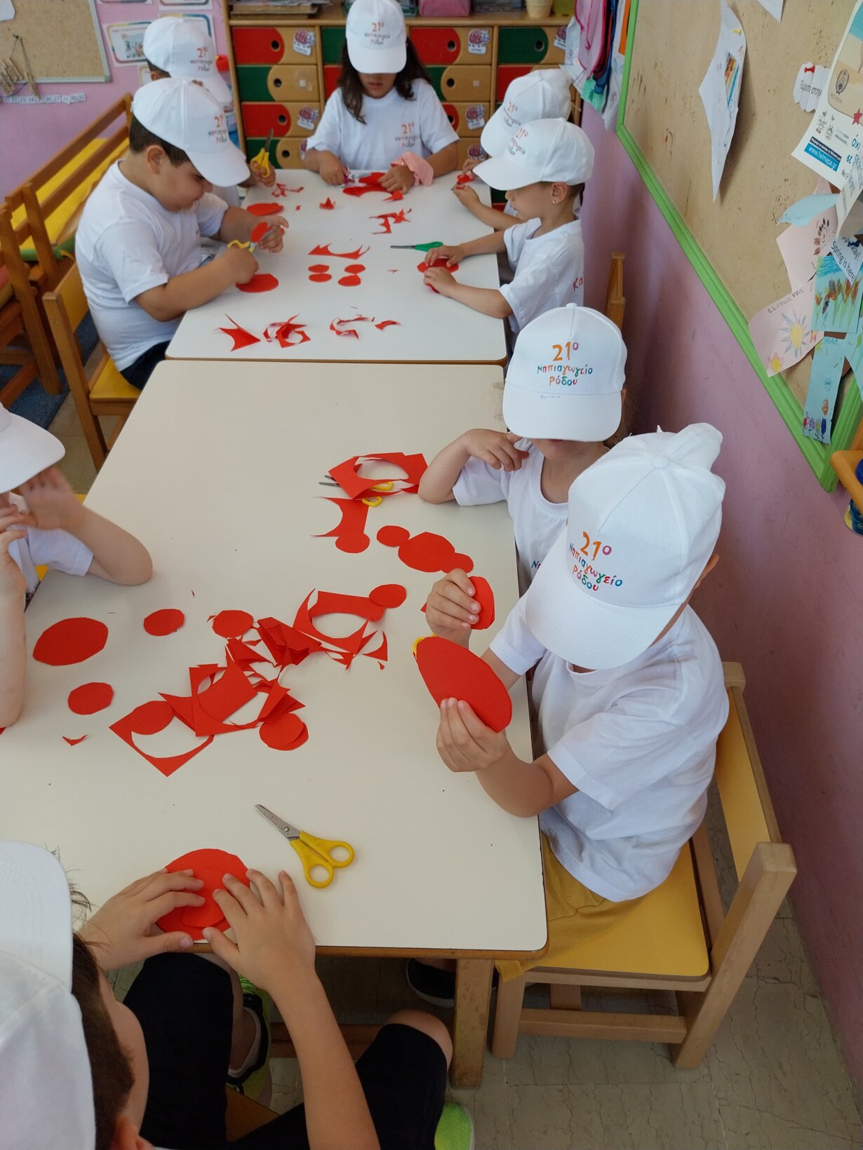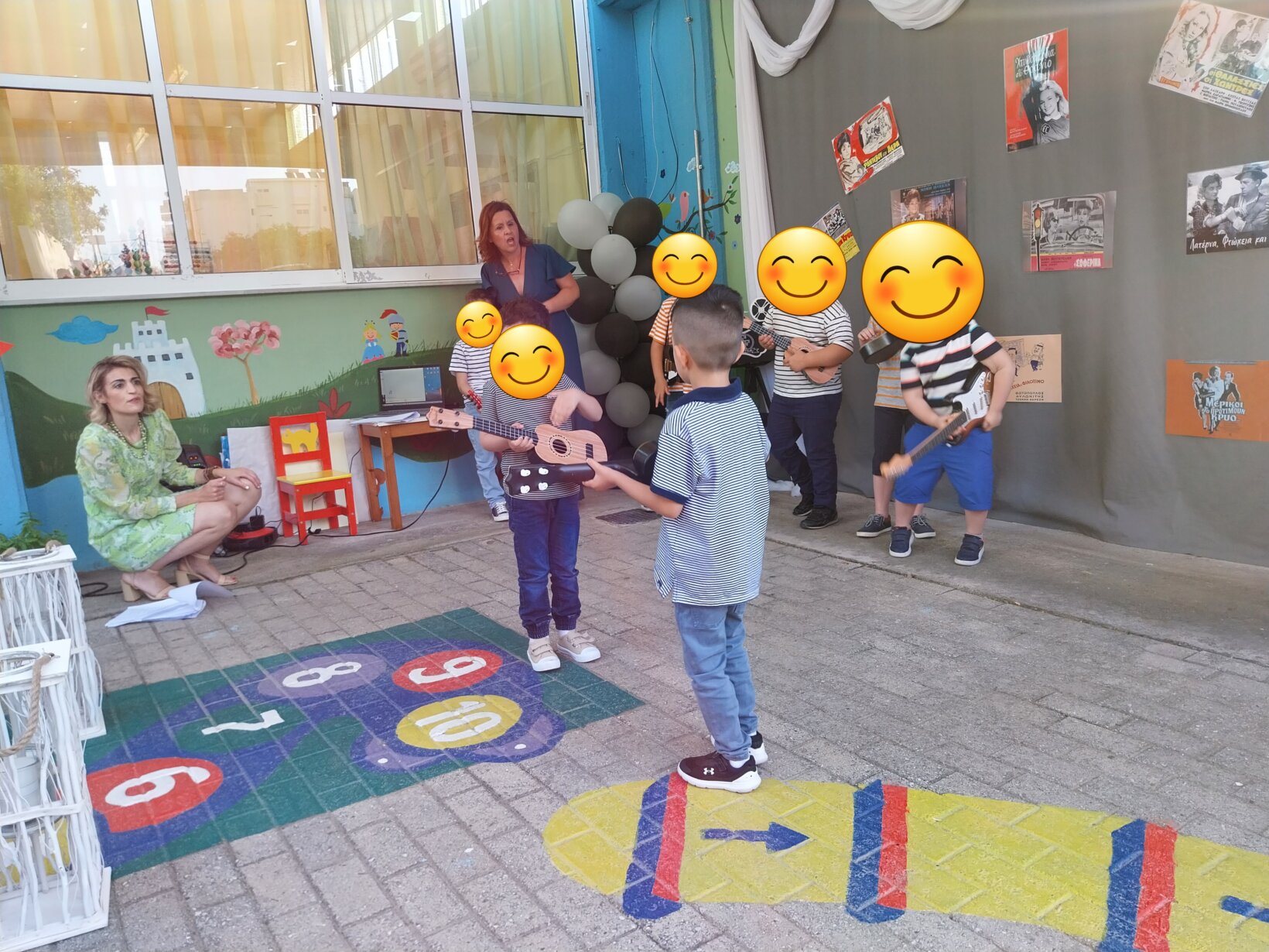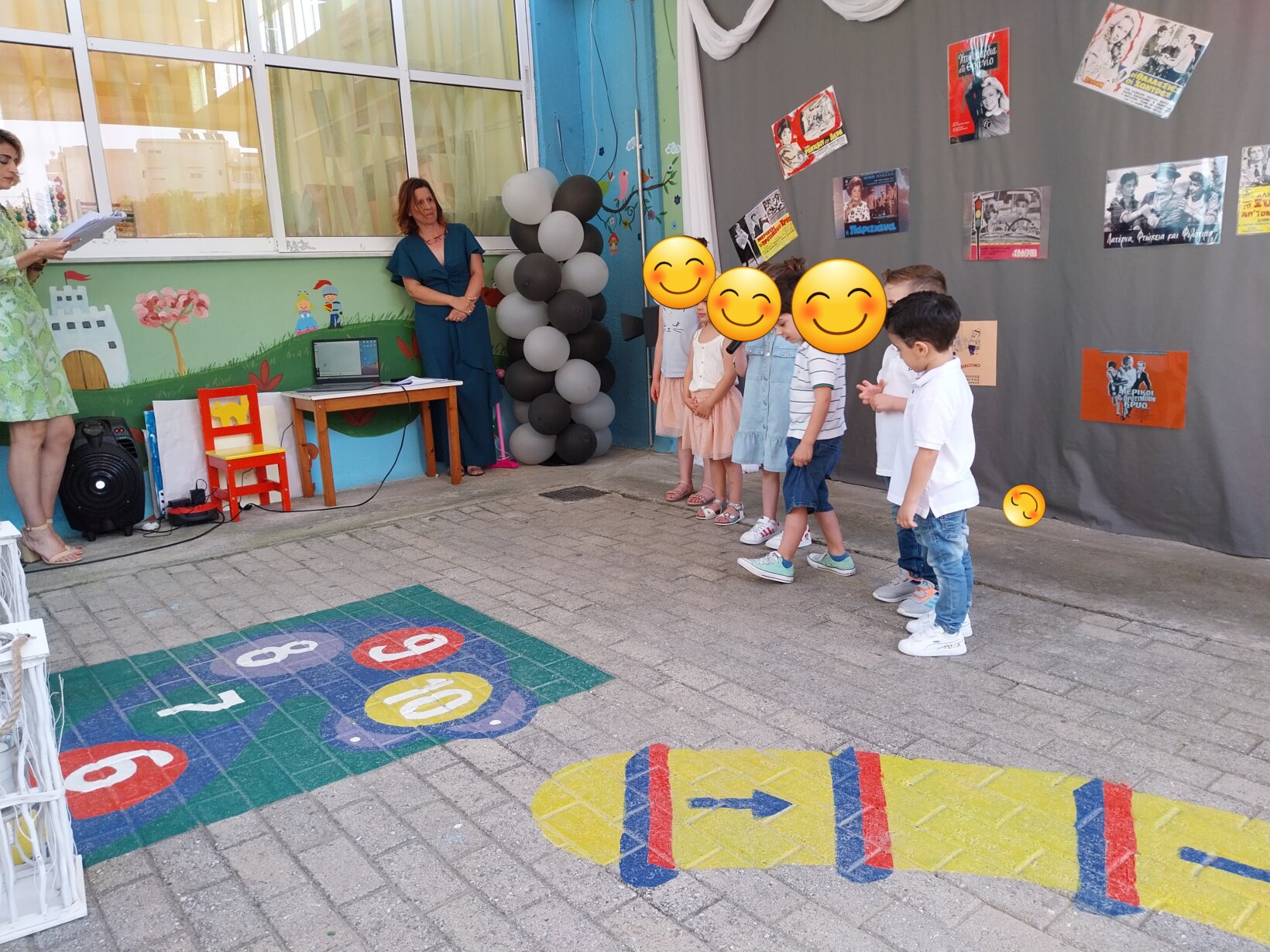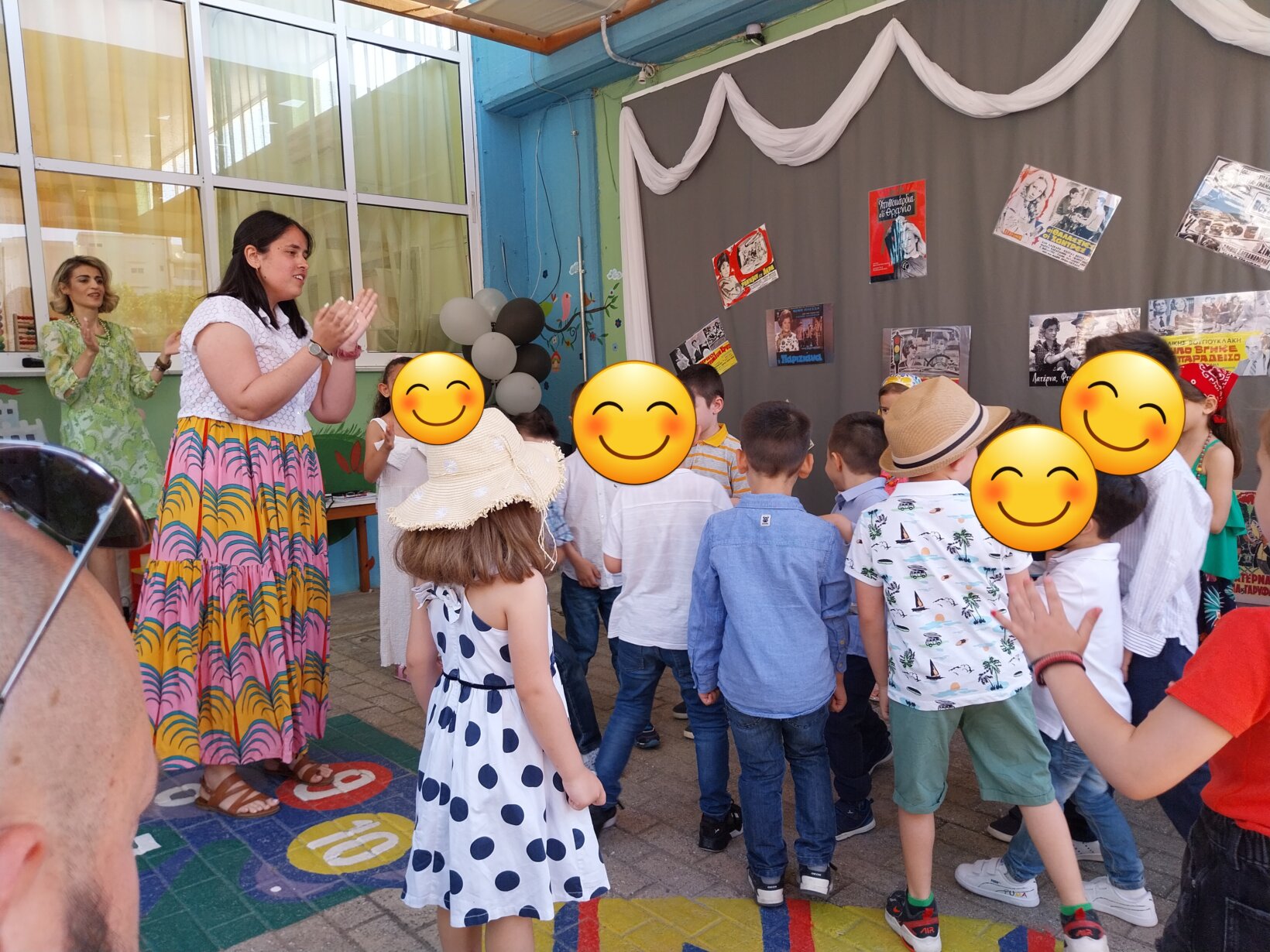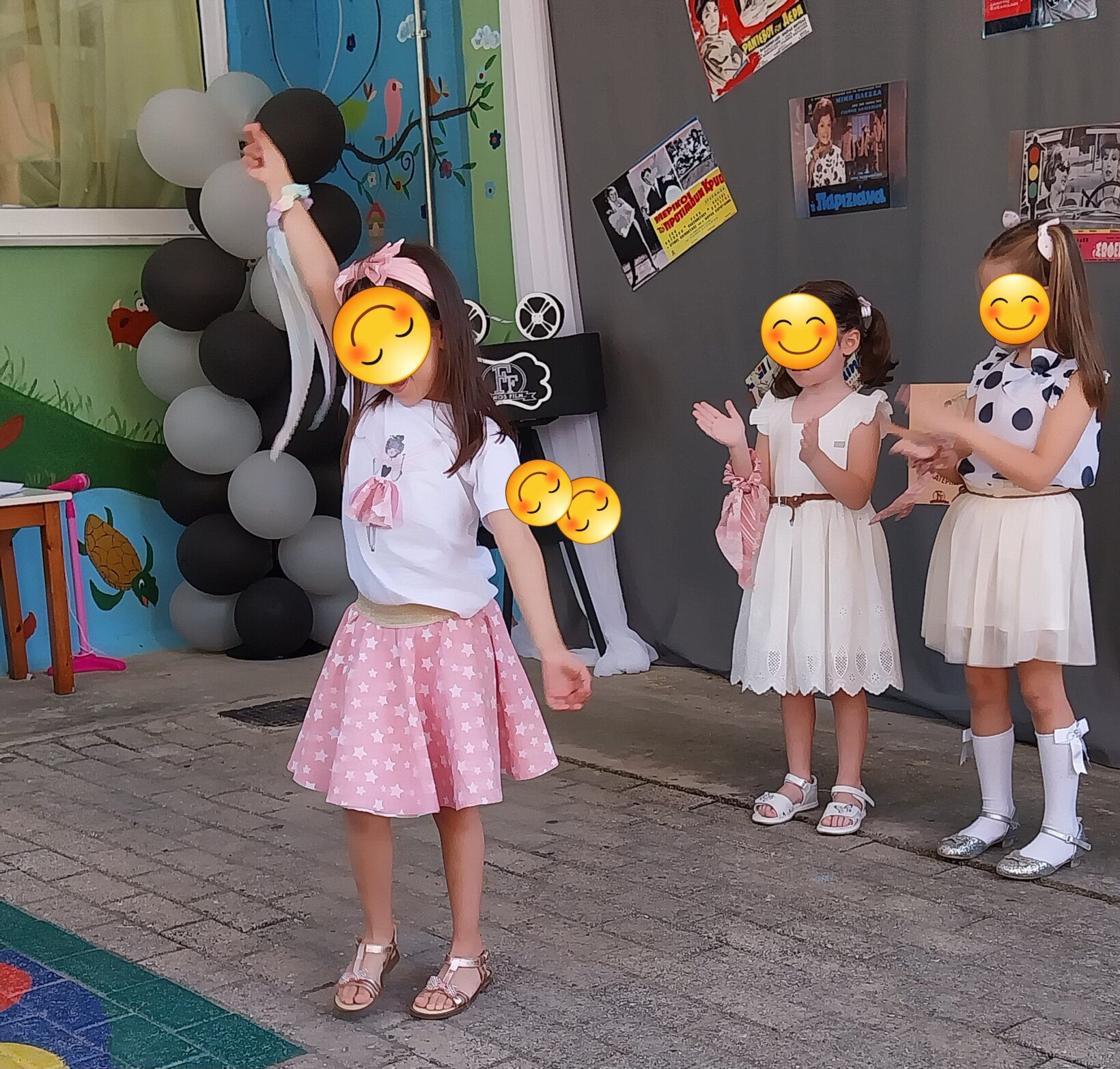 Έφτασε λοιπόν, η στιγμή που θα αποχαιρετήσουμε το νηπιαγωγείο με την καλοκαιρινή μας γιορτή ,που φέτος είχε θέμα τον ελληνικό κινηματογράφο. Τα παιδιά είχαν την ευκαιρία να μάθουν τους αστέρες της παλιάς εποχής, που σημείωναν μεγάλες επιτυχίες στα σινεμά την δεκαετία 1960-1970.Πληροφορήθηκαν για την Φίνος Φίλμ την εταιρεία παραγωγής ταινιών της εποχής μέσα από το διαδίκτυο, για τον τρόπο που γύριζαν τις ταινίες, τα σκηνικά και τα κουστούμια και συμμετείχαν στην δημιουργία του σκηνικού. Αποφασίσαμε σε όλες τις τάξεις, έπειτα από συζήτηση ,τον τίτλο της γιορτής Σαν παλιό σινεμά .. . και το ταξίδι πίσω στην εποχή του παλιού κινηματογράφου ξεκίνησε ….