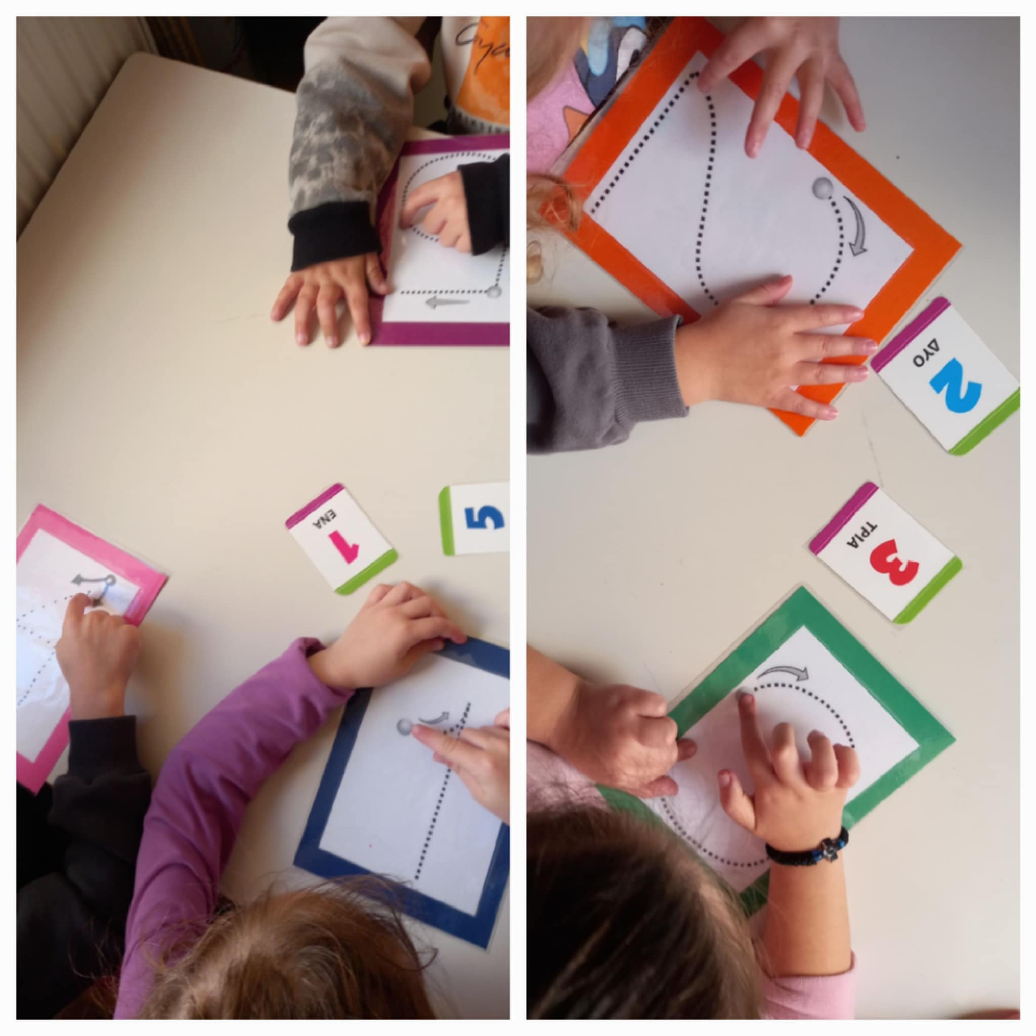 Τα παιδιά ανακαλύπτουν την γραφή των αριθμών πρώτα μέσα από παιγνιώδεις δραστηριότητες της πλαστελίνης. Είναι μια άσκηση πρώτης γραφής, Εξασκούν τους μυς των δακτύλων, την τριποδική λαβή, τον οπτικοκινητικό συντονισμό και μέσα από όλα αυτά μαθαίνουν να γράφουν τους αριθμούς 1-5.