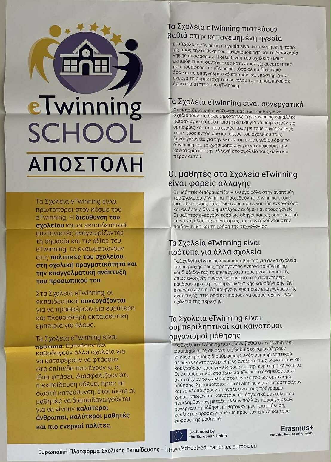 της Ευρωπαϊκής Ετικέτα “eTwinning School Label” του νηπιαγωγείου μας