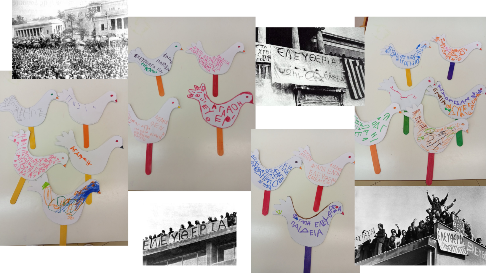 Τα παιδιά έγραψαν ιστορικά συνθήματα, δημιούργησαν πλακάτ για την ειρήνη, τη δημοκρατία και τα ανθρώπινα δικαιώματα, και συζήτησαν για το πώς μπορούμε σήμερα να προστατεύουμε και να τιμούμε αυτές τις αξίες.