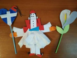 Μέσα από τα διαδικτυακά μας μαθήματα προσπαθήσαμε να εξηγήσουμε στα παιδιά την ιστορία και τα βαθύτερα νοήματα της Ελληνικής Επανάστασης του 1821. Με βίντεο , και ψηφιακό εποπτικό υλικό προσεγγίσαμε τους αγώνες των Ελλήνων για την ελευθερία τους. Γνωρίσαμε ήρωες, ακούσαμε τραγούδια, διαβάσαμε παραμύθια, μιλήσαμε για την παράδοση. Μαζί με αυτά όμως γνωρίσαμε και τον Ευαγγελισμό της Θεοτόκου. Μερικές από τις κατασκευές μας.