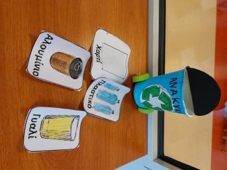 Αυτή την εβδομάδα ασχοληθήκαμε στο Νηπιαγωγείο μας με τη θεματική <Προστασία του περιβάλλοντος -Ανακύκλωση>. Συζητήσαμε για το τι είναι φυσικό περιβάλλον για κάθε ζωντανό οργανισμό του πλανήτη μας , διαπιστώσαμε τους κινδύνους που διατρέχει και ανακαλύψαμε τρόπους για την προστασία του. Ανάμεσα στα άλλα καταλάβαμε πως τα σκουπίδια μας δεν είναι σκουπίδια, αλλά ανακυκλώσιμα υλικά , τα οποία μπορούν να χρησιμοποιηθούν ξανά και ξανά, εξοικονομώντας έτσι ενέργεια και πόρους. Η κ. Ευγενία Καραπάτσιου, περιβαλλοντολόγος της ΔΙΑΔΥΜΑ, επισκέφθηκε το Νηπιαγωγείο και παρουσίασε στα παιδιά εκπαιδευτικό πρόγραμμα για την ανακύκλωση. Τ παιδιά της χάρισαν μια ομαδική αφίσα. Βγήκαμε στους δρόμους πέριξ του σχολείου και ανακυκλώσαμε στους κάδους, γυαλί, πλαστικό, χαρτί και αλουμίνιο. Παίξαμε ποικίλα παιχνίδια αντιστοίχισης και ταξινόμησης υλικών, ρομποτικής και διαδραστικά, διαβάσαμε βιβλία και κάναμε κατασκευές.