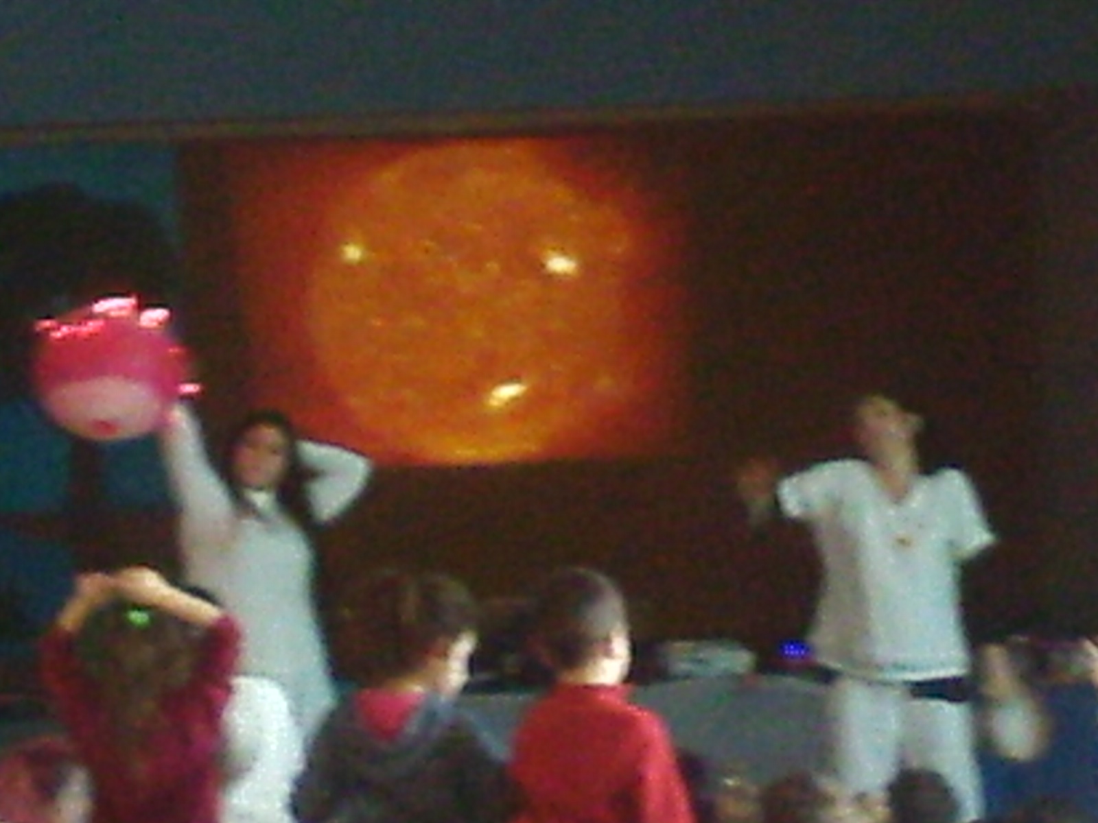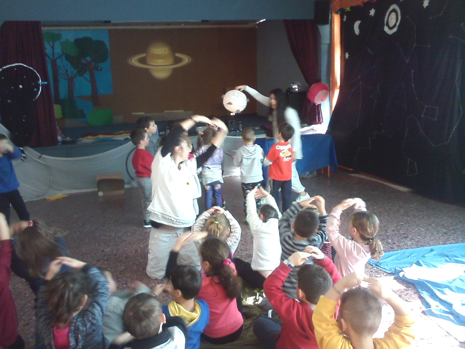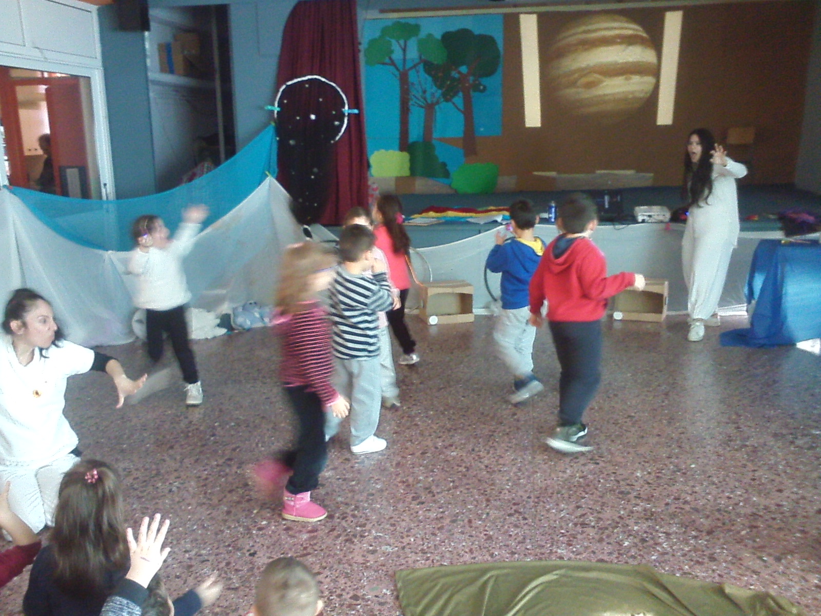 Από τα ωραιότερα βιωματικά προγράμματα που παρακολουθήσαμε στο σχολείο μας (Ομαδα Συν Κίνηση). Προβολη πλανητών με προτζέκτορα, δραματοποίηση κίνησης πλανητών και δορυφόρων, κατάλληλη μουσική υπόκρουση… πειράματα έκρηξης..
