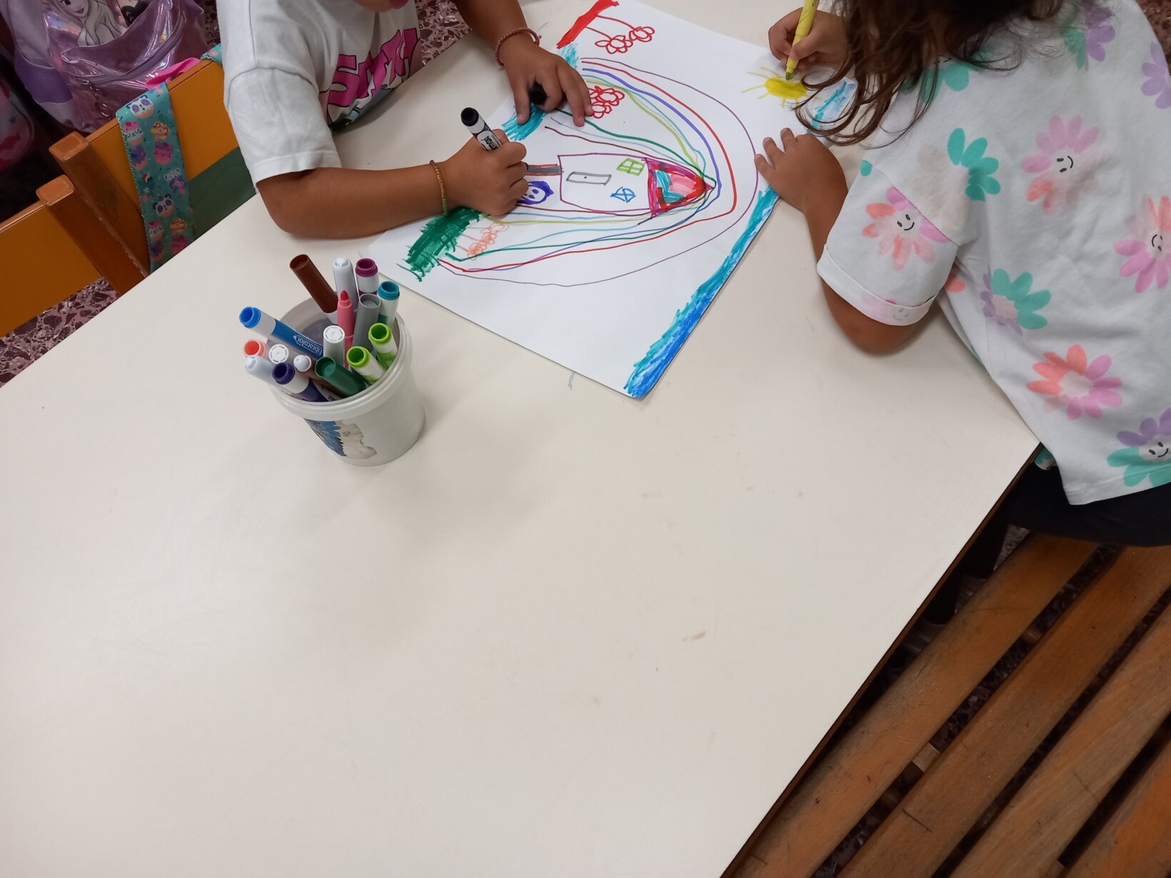 Τα παιδιά ζωγραφίζουν τον εαυτό τους και ένα νέο φίλο ή φίλη που έκαναν στο νηπιαγωγείο