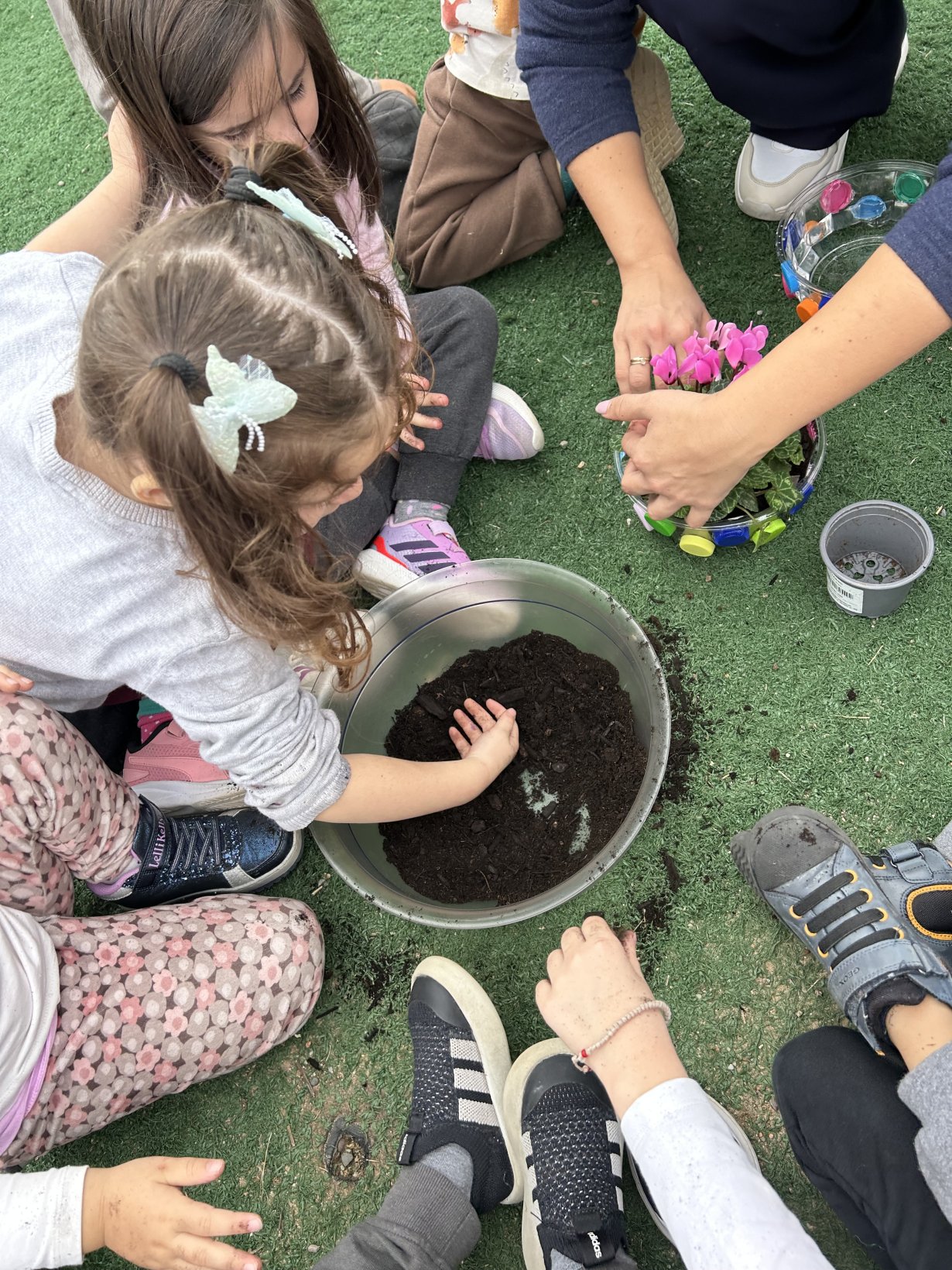 Οι μικροί μας μαθητές και μαθήτριες, με τη στήριξη των εκπαιδευτικών τους, δημιούργησαν γλάστρες από ανακυκλώσιμα υλικά – πλαστικά μπολ και καπάκια από μποκάλια, κουτιά, χαρτόνια – δίνοντας τους νέα ζωή. Φύτεψαν μέσα τους όμορφα φυτά, τα πότισαν, τα φρόντισαν και τα στόλισαν με χρώματα και χαμόγελα.