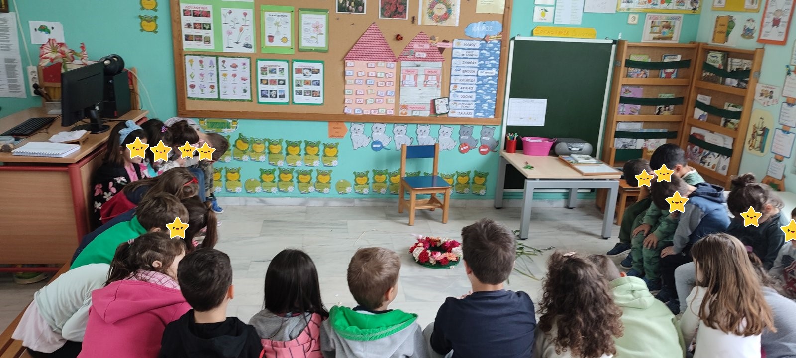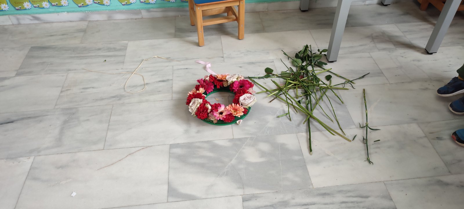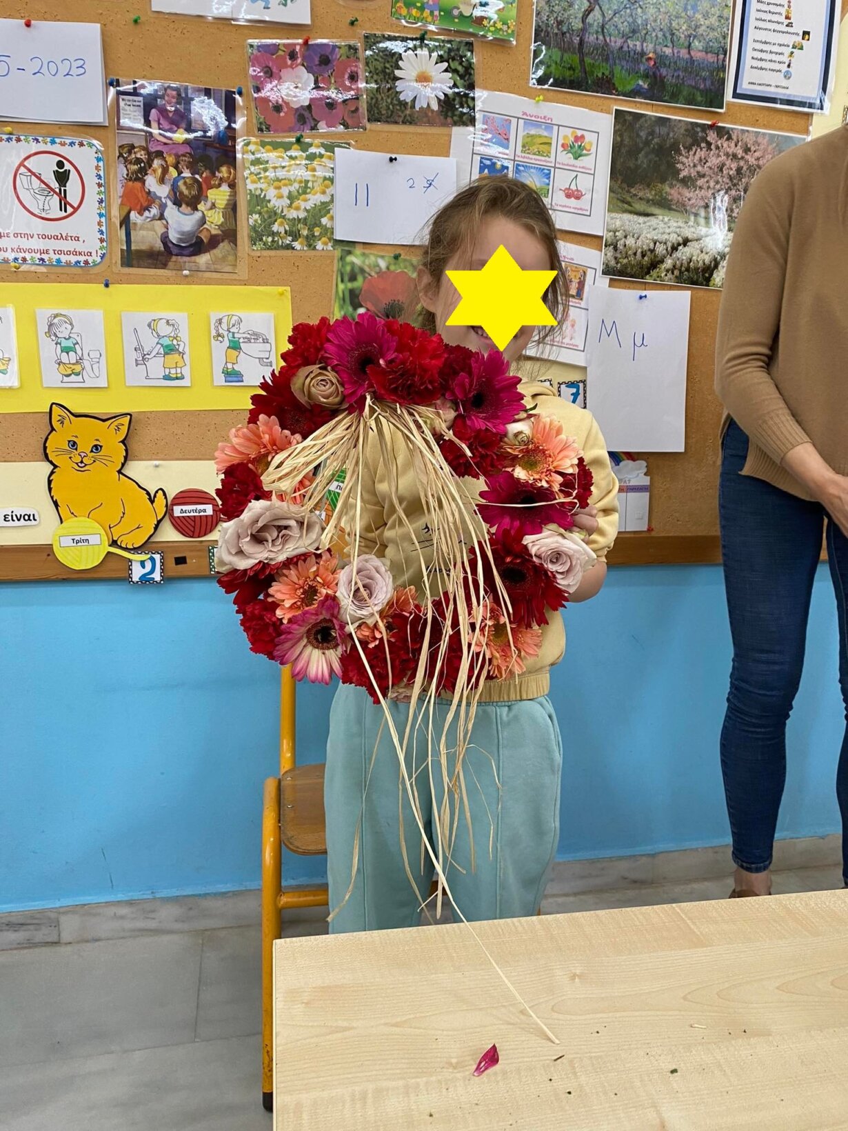 Την Τρίτη 2 Μαΐου, μόλις μπήκαμε στις τάξεις μας το πρωί, μας περίμενε μία φοβερή έκπληξη. Κάποιος πέρασε από το σχολείο μας και μας άφησε πολύχρωμα λουλούδια.