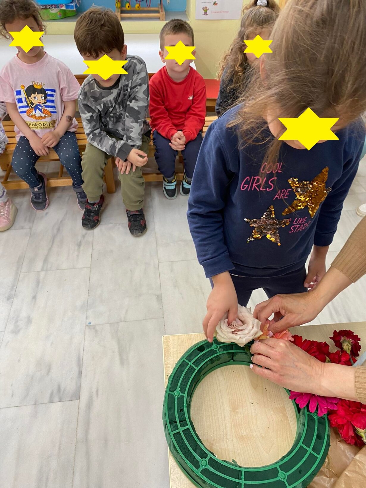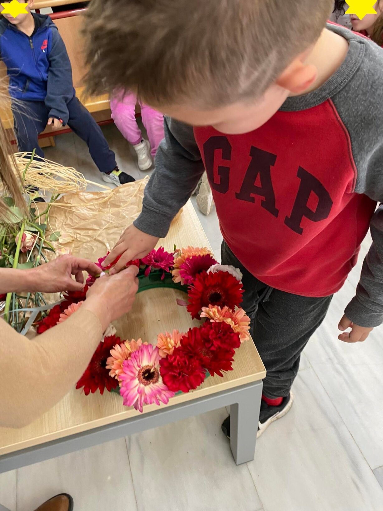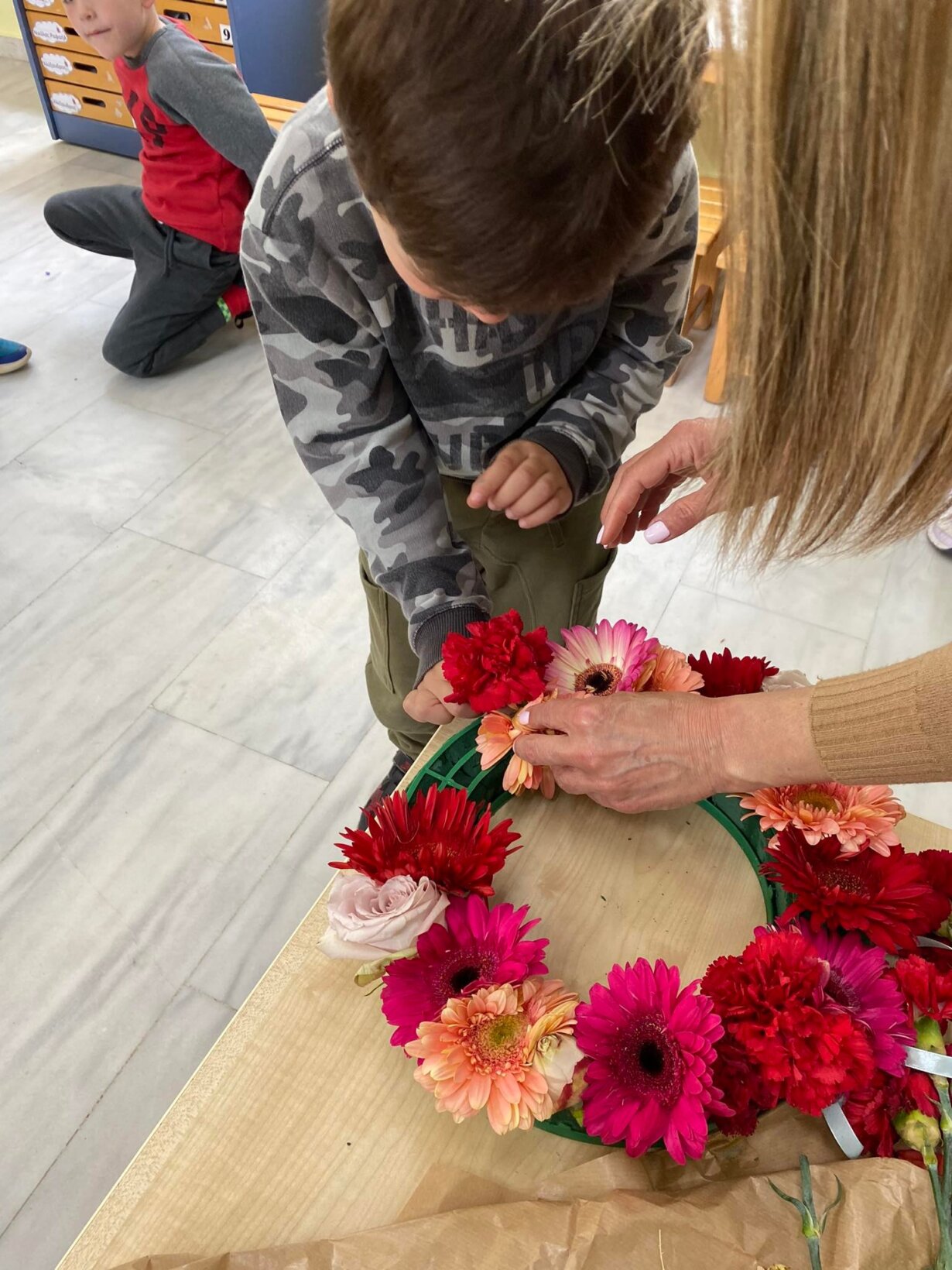 Αμέσως σκεφτήκαμε να φτιάξουμε πανέμορφα μαγιάτικα στεφάνια. Η τάξη μας γέμισε με όμορφες ανοιξιάτικες μυρωδιές και φανταστικά χρώματα.
