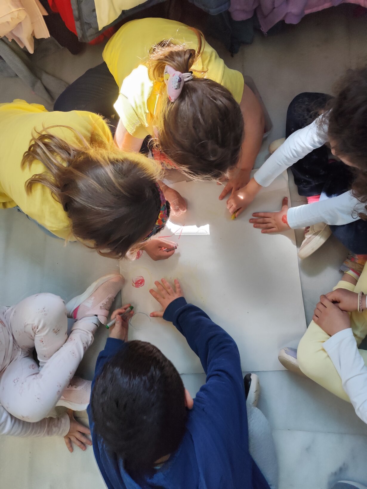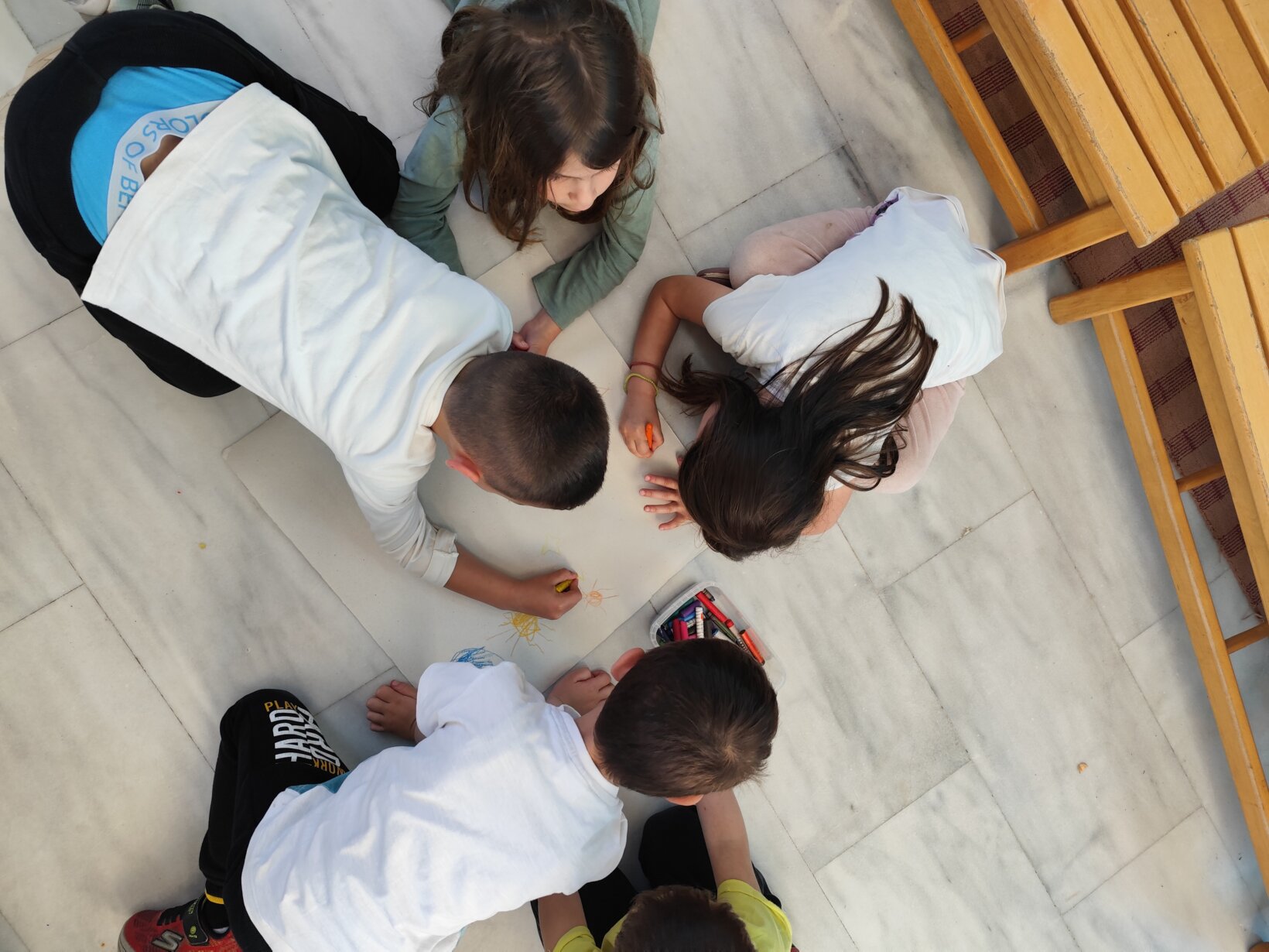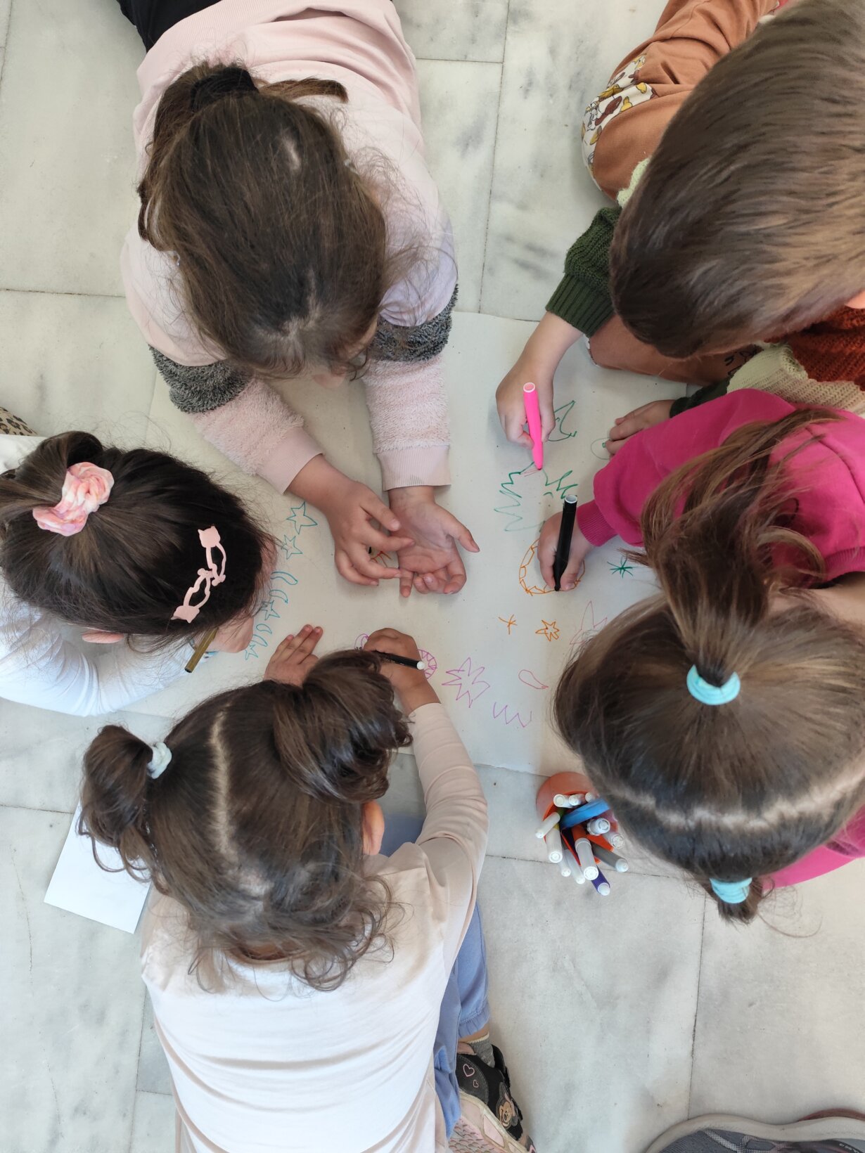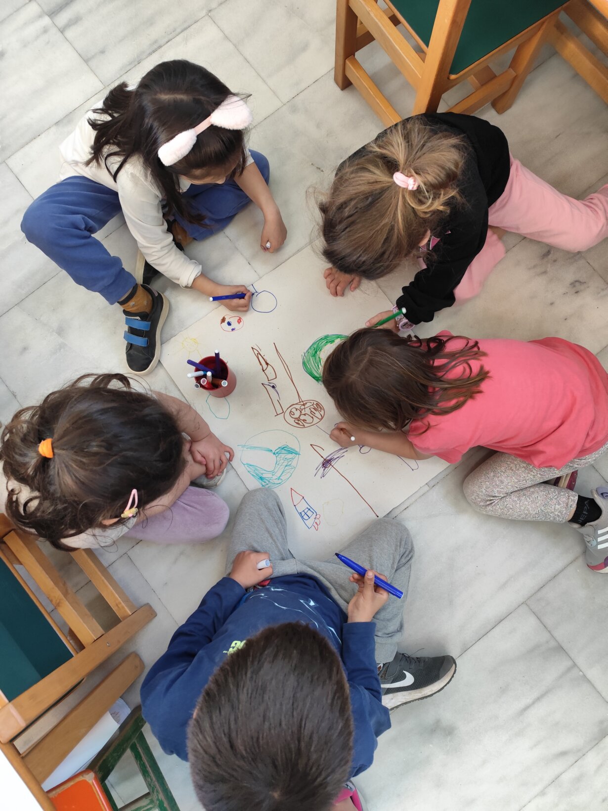 Τα παιδιά χωρίστηκαν ξανά στις 4 ομάδες που βρίσκονταν στην αρχή του εργαστηρίου και ζωγράφισαν αυτό που τους άρεσε περισσότερο κατά τη διάρκεια αυτού.