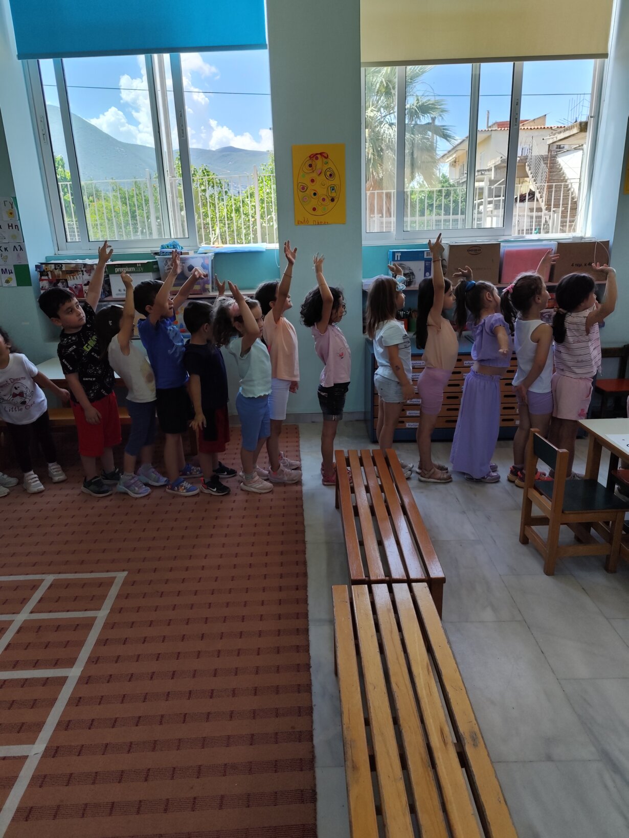 Τα παιδιά του δεύτερου τμήματος πραγματοποίησαν τη κυκλική τροχιά του κάθε πλανήτη γύρω από τον Ήλιο. Το κάθε παιδί κρατούσε στο χέρι το δικό του πλανήτη και περιστρεφόταν στο δικό του κύκλο.