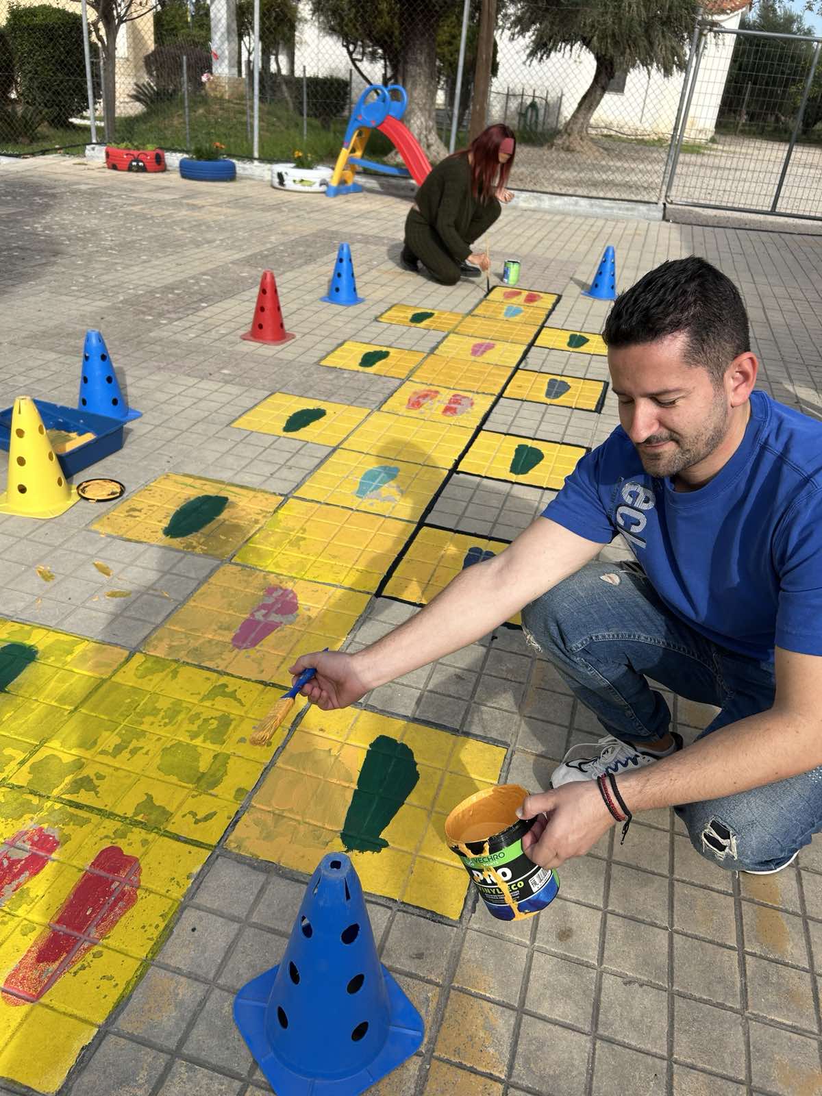 Ευχαριστούμε πολύ το σχολικό νοσηλευτή μας, κύριο Γεώργιο Ζαρανιάκο, για την συμβολή και τη πρότασή του στην ανανέωση των επιδαπέδιων παιχνιδιών της αυλής μας!