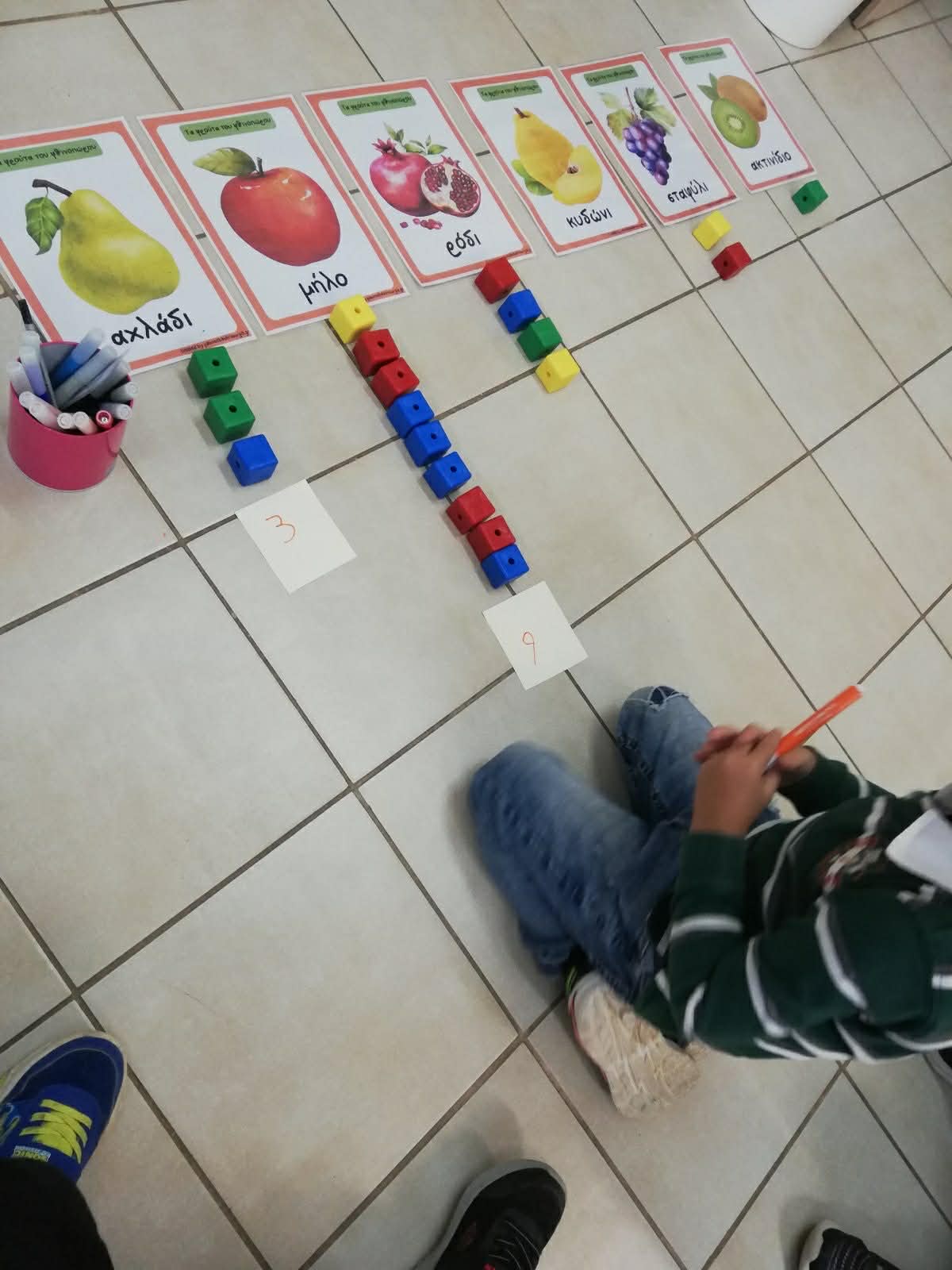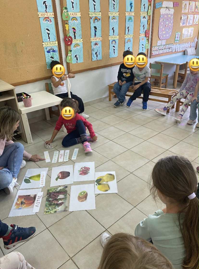 Παίξαμε παιχνίδια με φθινοπωρινά φρούτα – μήλα, αχλάδια, ρόδια και σταφύλια – γνωρίζοντας τα σχήματα, τα χρώματα και τις μυρωδιές