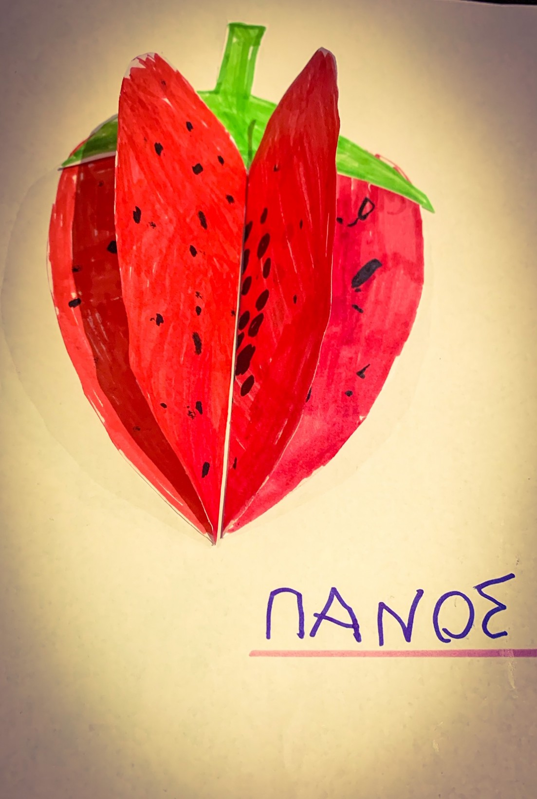 “Είναι κόκκινη με μαύρες βούλες στολίζει τα γλυκα και την τρώνε τα παιδιά”