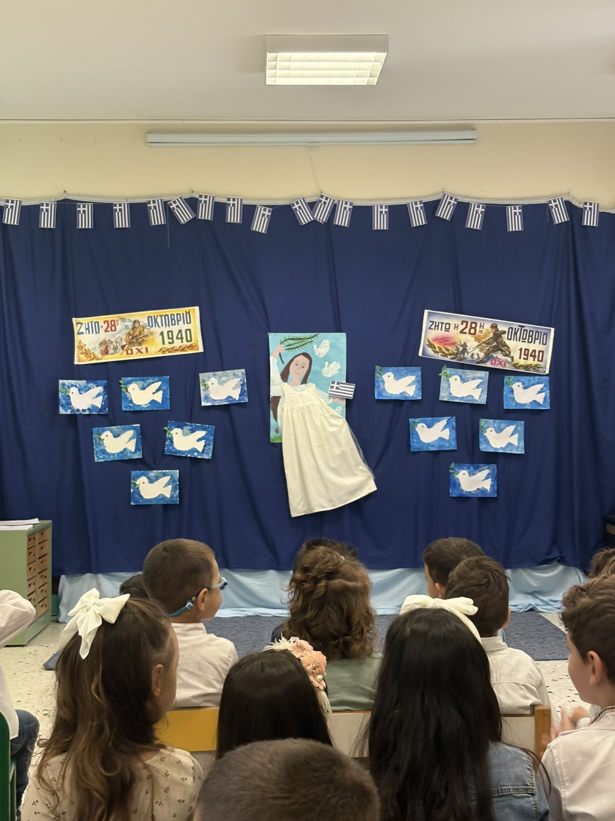 Η σημερινή μέρα είναι σημαντική για την πατρίδα μας.Πρίν πολλά χρόνια οι Έλληνες πολέμησαν με θάρρος και θυσίες για την ελευθερία και είπαν ένα μεγάλο ΟΧΙ στου Ιταλούς.Γιορτάζουμε την ειρήνη,την ελευθερία και την πατρίδα μας.