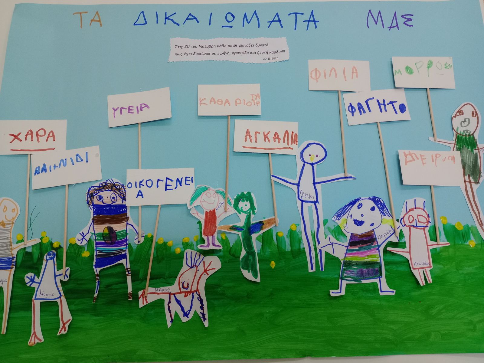 Σήμερα, στο Νηπιαγωγείο μας, γιορτάσαμε την Παγκόσμια Ημέρα Δικαιωμάτων του Παιδιού, μια ημέρα αφιερωμένη σε όλα τα παιδιά του κόσμου και στις ανάγκες τους για αγάπη, φροντίδα, προστασία και σεβασμό.