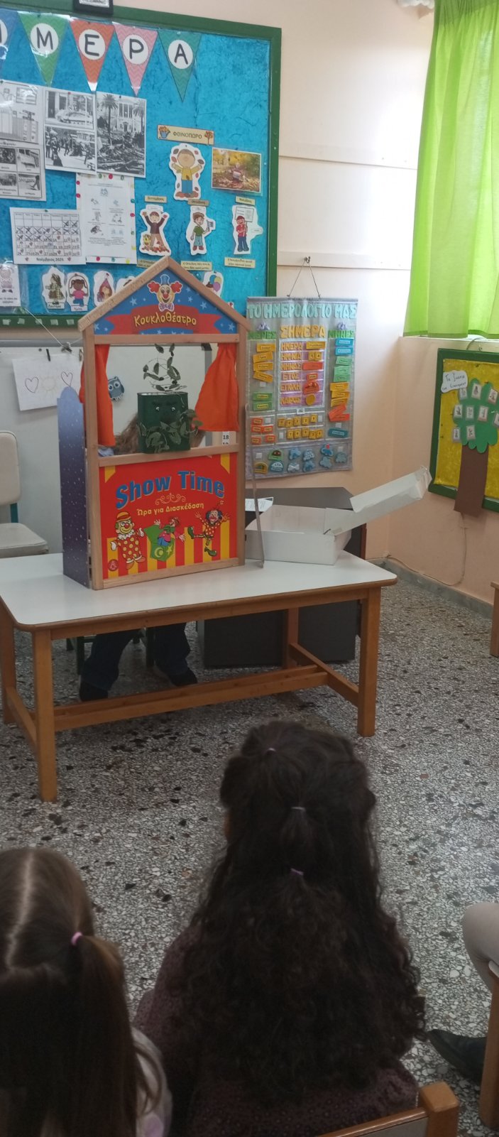 Μια ξεχωριστή στιγμή ήταν όταν η κυρία Μένια παρουσίασε κουκλοθέατρο, παρουσιάζοντας στα παιδιά το αγαπημένο έργο «Ντενεκεδούπολη». Οι μικροί μαθητές παρακολούθησαν με ενθουσιασμό τις περιπέτειες των ντενεκεδάκων, κατανοώντας μέσα από το παιχνίδι και τη δραματοποίηση έννοιες όπως δικαιώματα, ελευθερία και συλλογικότητα.