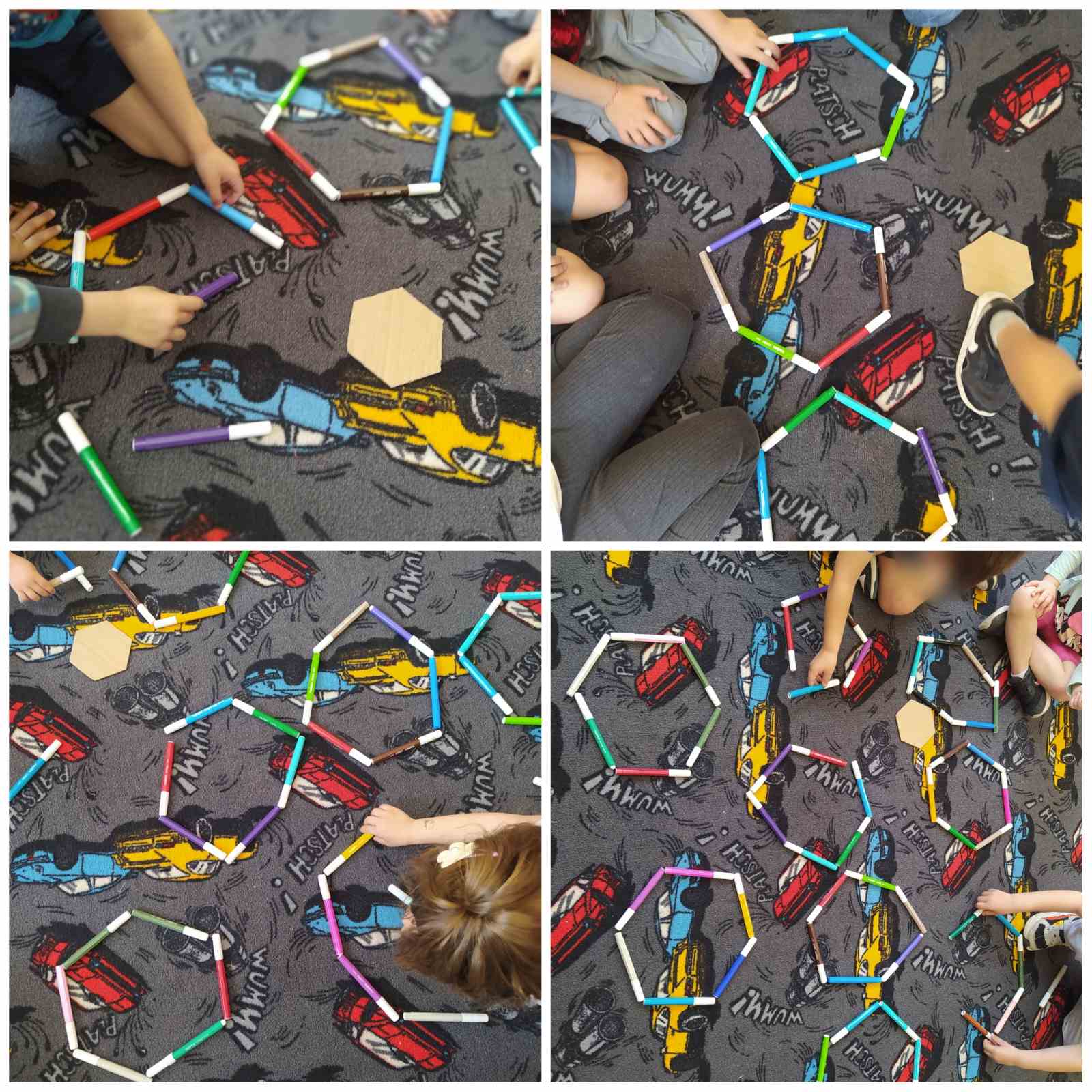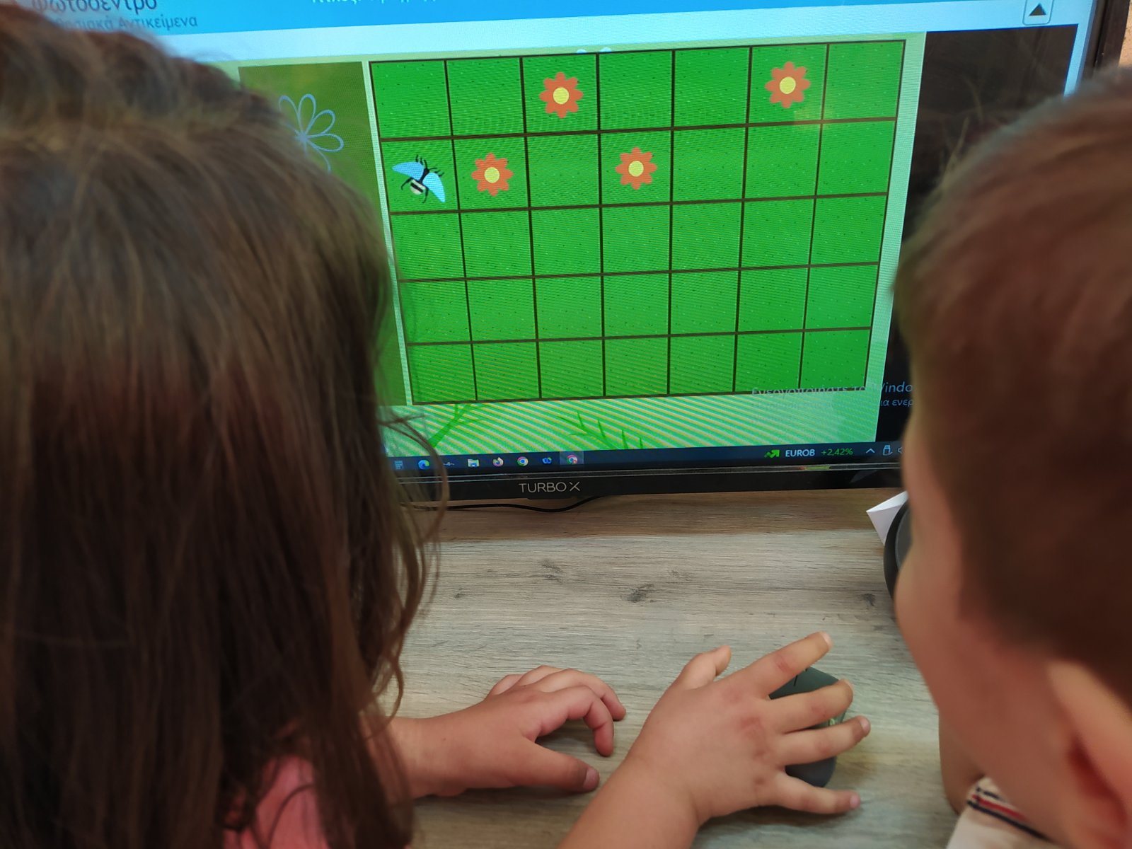 Τα παιδιά της τάξης χωρίζονται σε ομάδες των πέντε. Στο πλέγμα του Beebot τοποθετούν καρτέλες με τα αρχικά του ονόματός τους, καθώς επίσης και καρτέλες για αφετηρία και τέρμα και επιλέγουν διαδρομές με το ρομποτάκι ώστε να φτάσουν στο αρχικό τους γράμμα. Καθώς βρισκόμαστε ακόμα στην αρχή της χρονιάς και κάποια παιδιά δυσκολεύονται, επιλέχθηκε μια δραστηριότητα ανά ομάδες, με λιγότερη πληροφορία κάθε φορά, αλλά και συνεργασία.