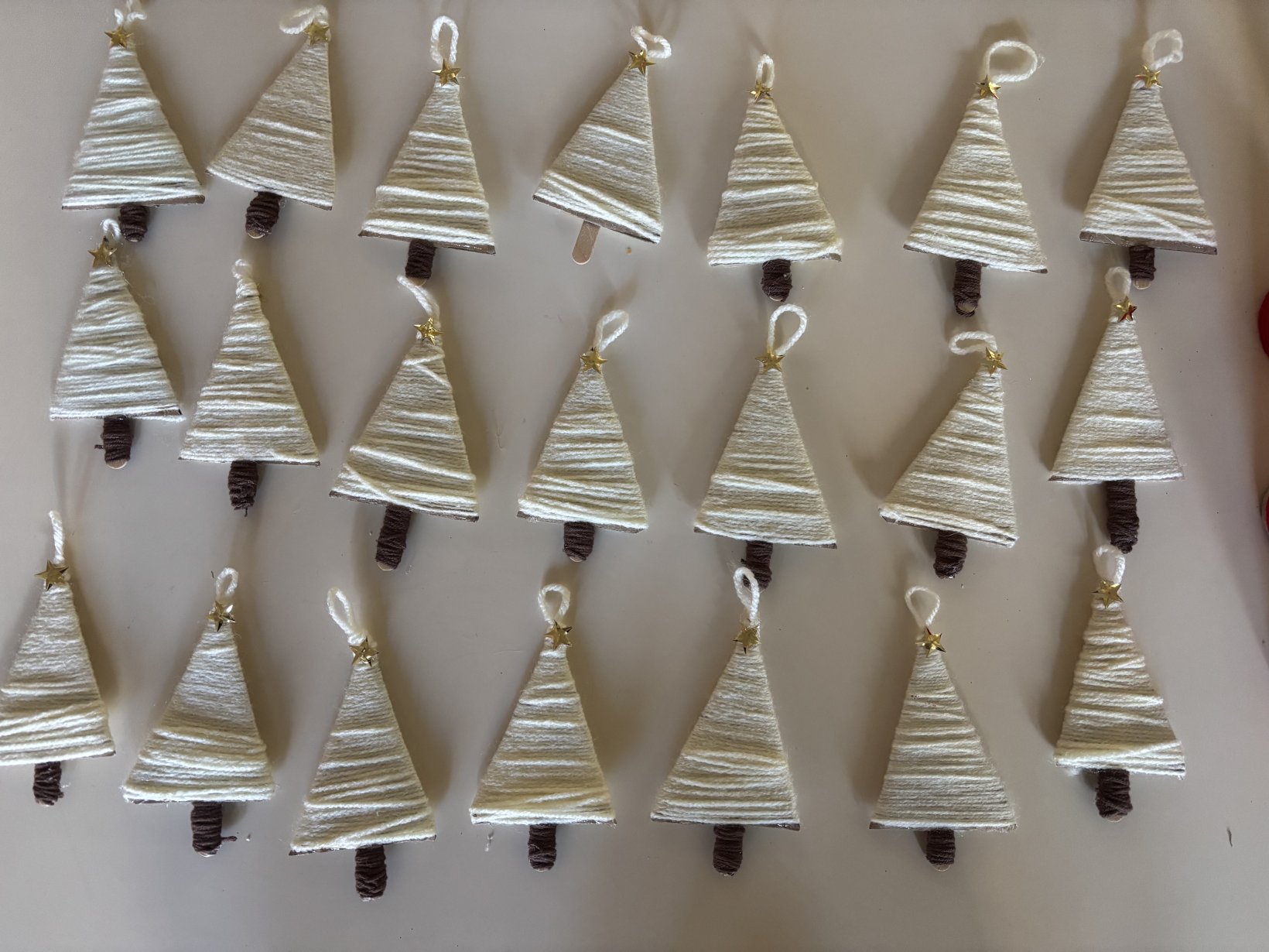 Οι ψεκασμένες με σπρέϋ πένες ζυμαρικών που είχαν λήξει και το τύλισμα από σοκοφρετάκια διακόσμησαν το Χριστουγεννιάτικο δέντρο μας