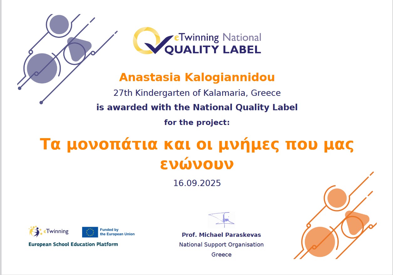 Αρχική » βραβεία » Εθνική ετικέτα ποιότητας για το έργο “τα μονοπάτια και οι μνήμες που μας ενώνουν”