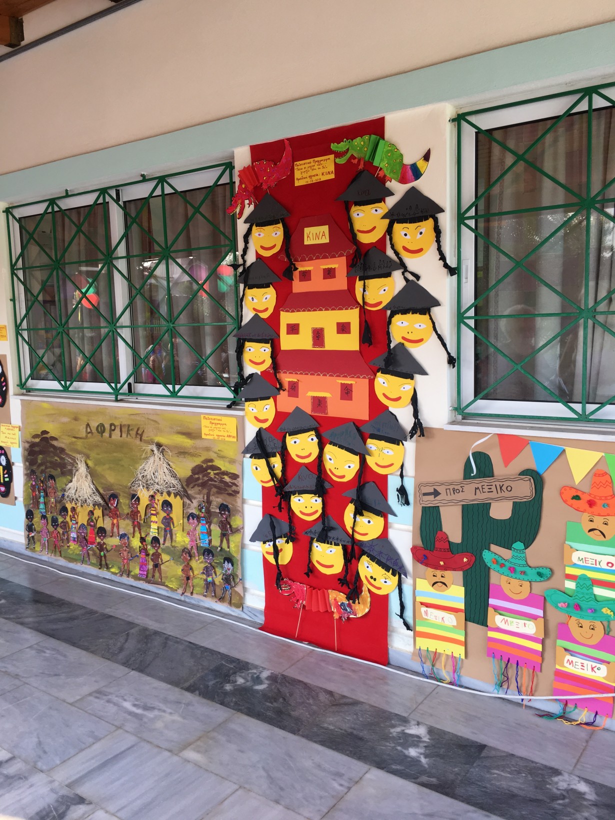 εικόνες από τις ομαδικές εργασίες των παιδιών διακοσμούν τους γύρω χώρους του νηπιαγωγείου μας