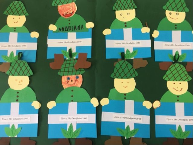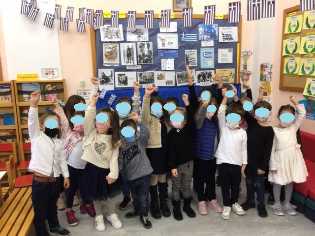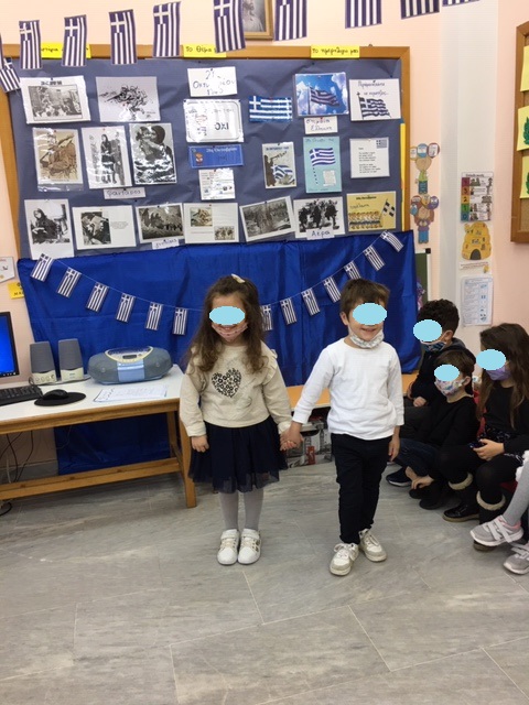 Λόγω των ιδιαίτερων υγειονομικών συνθηκών και εξ αιτίας της πανδημίας οι γιορτούλες έγιναν ξεχωριστά στο κάθε Τμήμα μας και δυστυχώς χωρίς την παρουσία των γονιών. Με σημαιάκια στα χέρια ,ντυμένα στα λευκά και μπλε τα παιδάκια μας είπαν τα ποιηματάκια τους και τραγουδήσαμε όλοι μαζί για τους ήρωες του Σαράντα ,το ΟΧΙ και για την Σημαία μας…