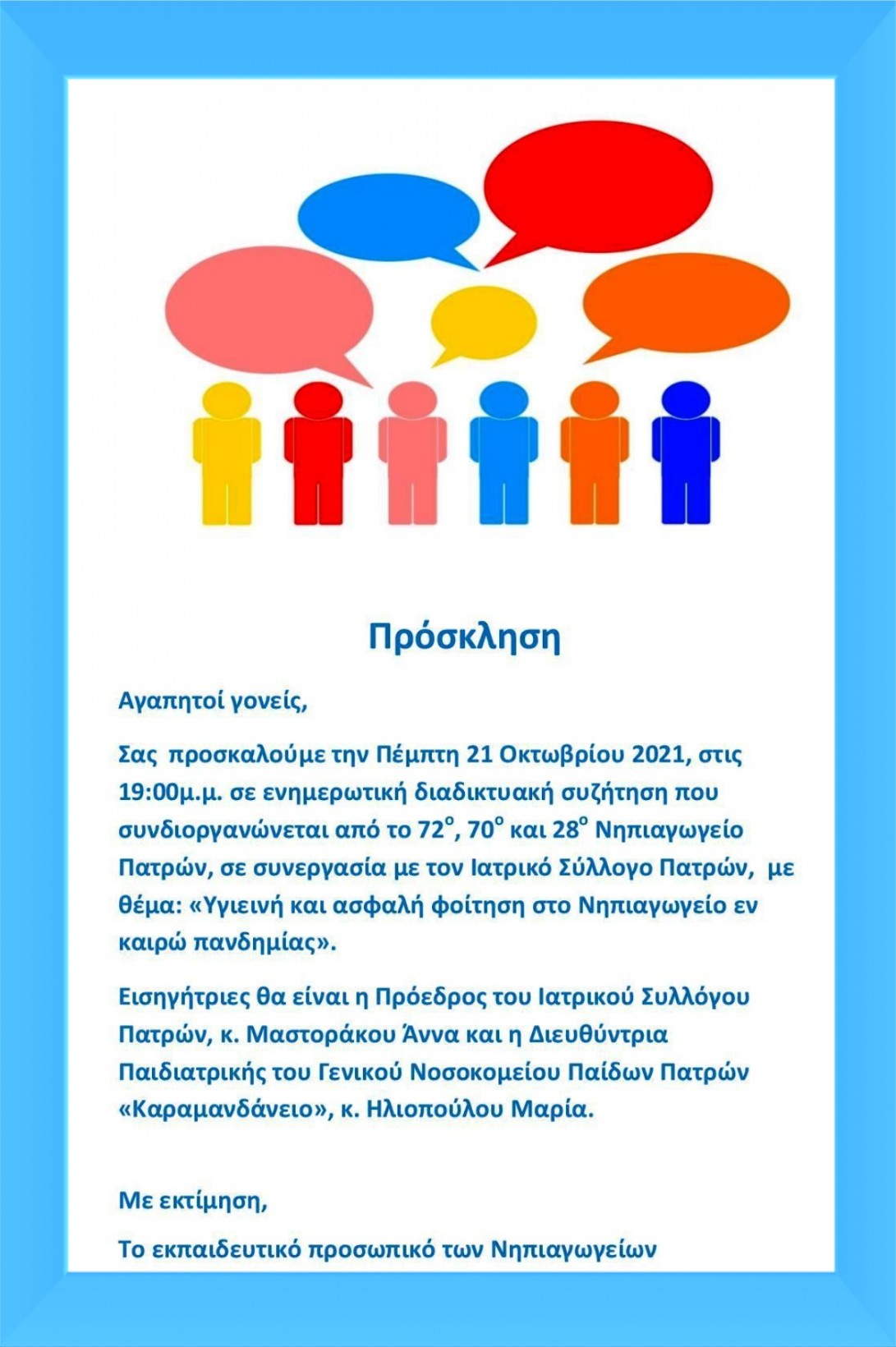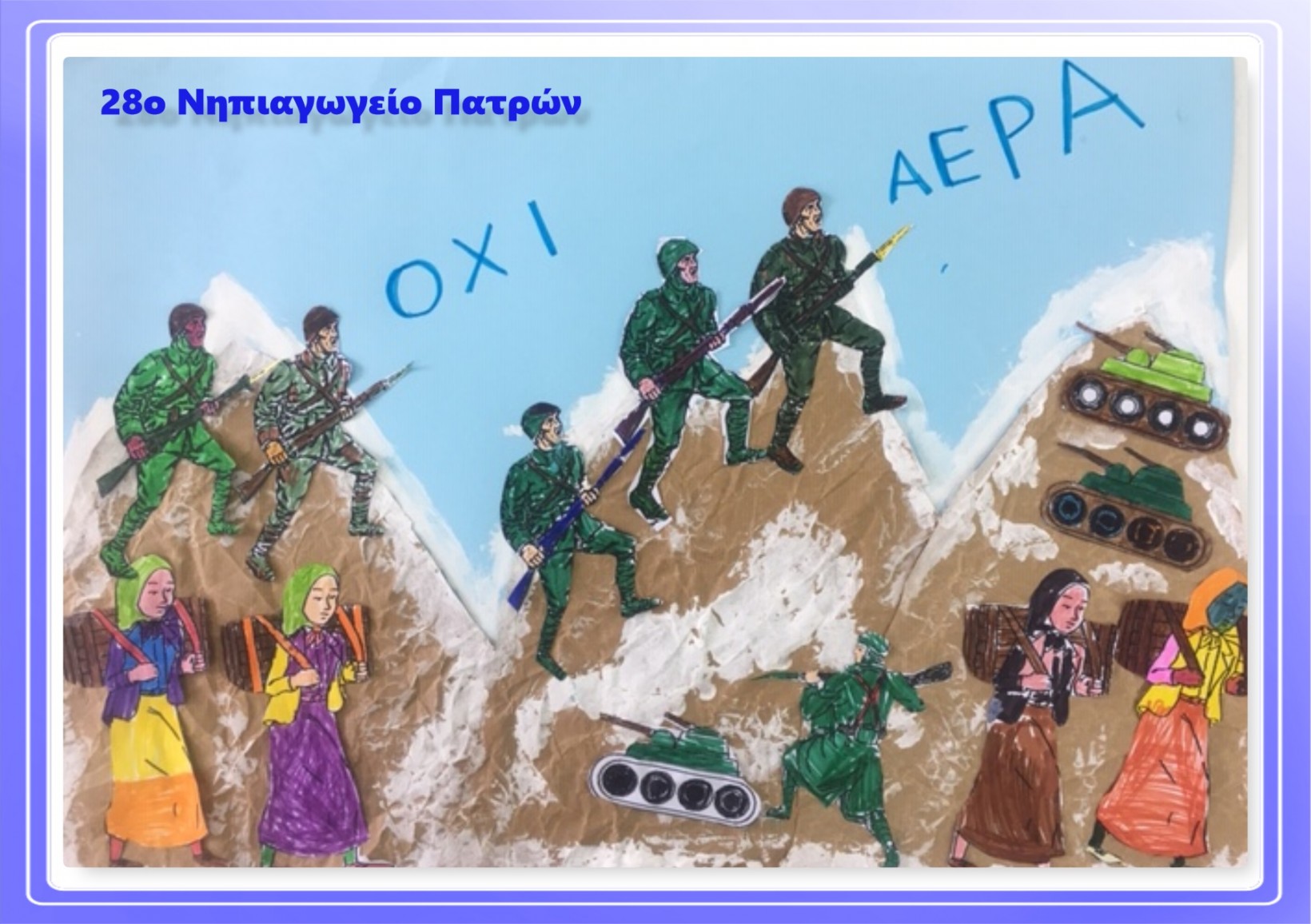 Λόγω των ιδιαίτερων υγειονομικών συνθηκών και εξ αιτίας της πανδημίας οι γιορτούλες έγιναν ξεχωριστά στο κάθε Τμήμα μας και δυστυχώς χωρίς την παρουσία των γονιών. Με σημαιάκια στα χέρια ,ντυμένα στα λευκά και μπλε τα παιδάκια μας είπαν τα ποιηματάκια τους και τραγουδήσαμε όλοι μαζί για τους ήρωες του Σαράντα ,το ΟΧΙ και για την Σημαία μας…