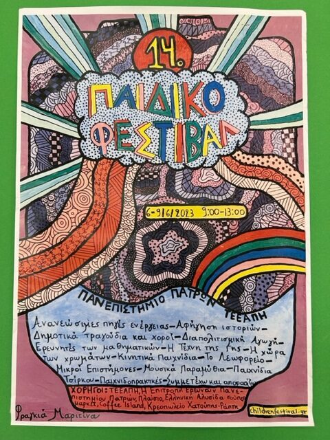 Την Τετάρτη 7 Ιουνίου 2023 το Νηπιαγωγείο μας συμμετείχε στο 14ο Παιδικό Φεστιβάλ του Τ.Ε.Ε.Α.Π.Η. το οποίο κάθε χρόνιο διοργανώνεται από το Τμήμα Επιστημών της Εκπαίδευσης και της Αγωγής στην Προσχολική Ηλικία του Πανεπιστημίου Πατρών στους ειδικά διαμορφωμένους χώρους του.