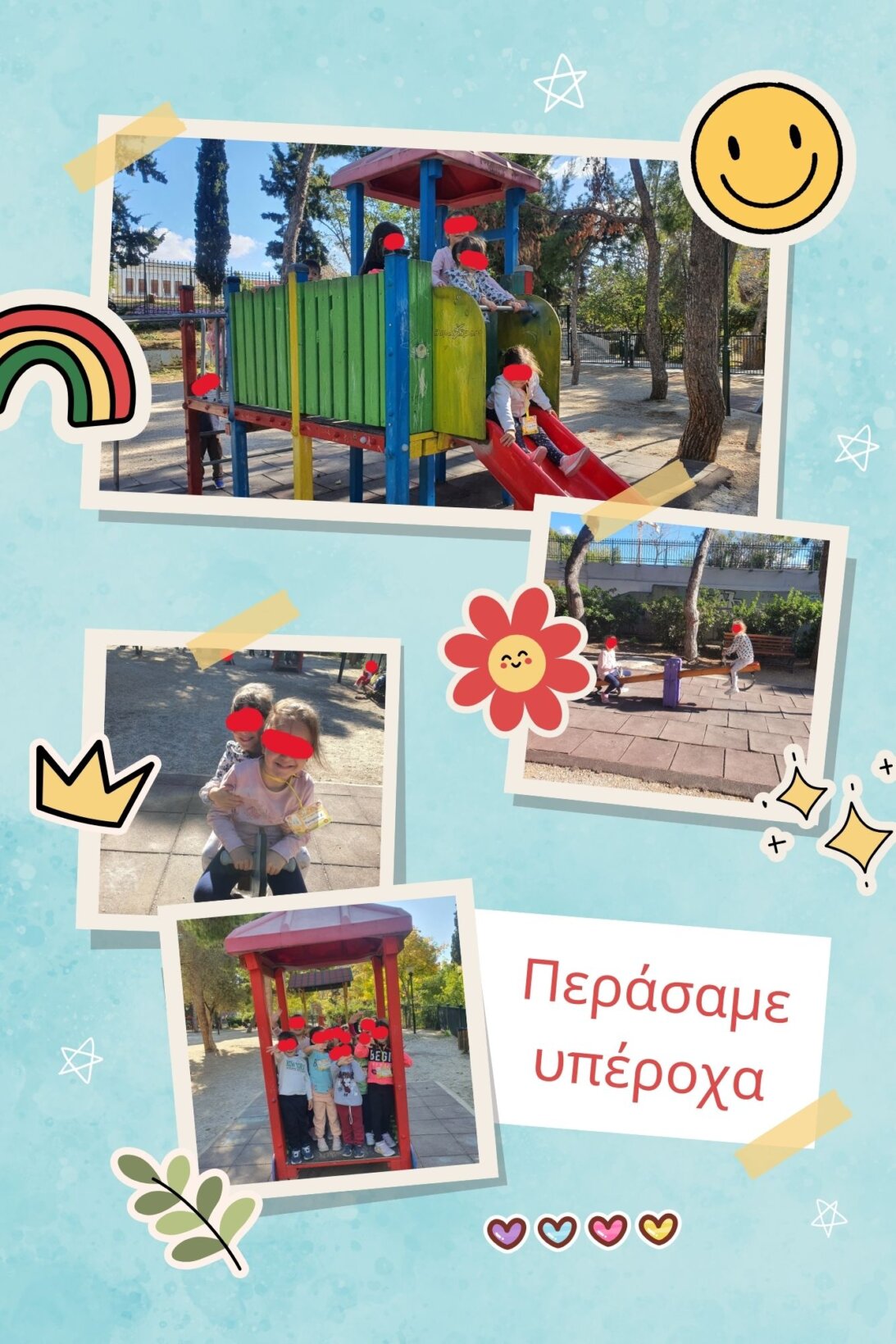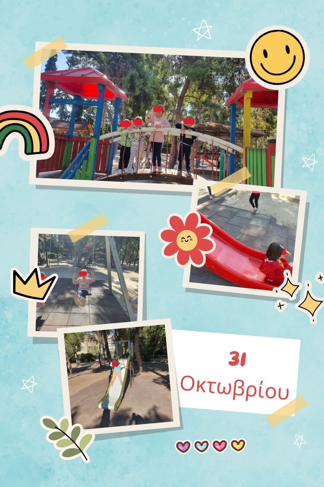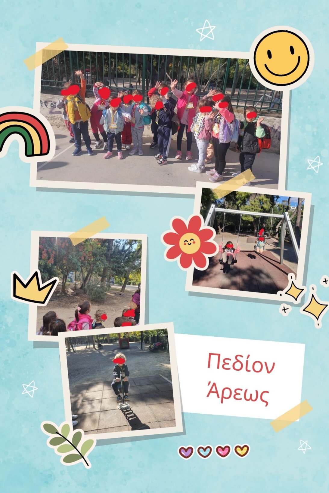 Στις 31 Οκτωβρίου 2024 πραγματοποιήσαμε επίσκεψη με τα πόδια στο κοντινό μας Πεδίον του Άρεως, όπου είδαμε την φθινοπωρινή αλλαγή της φύσης αλλά παίξαμε και την παιδική χαρά του πάρκου.