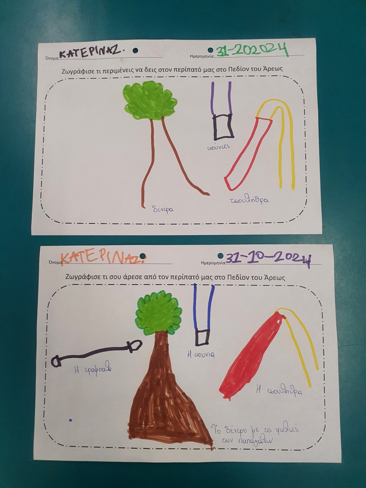Πριν πάνε τα παιδά επίσκεψη στο πάρκο ζωγραφίσαν τι περιμένουν να δούμε σε αυτό και αφού γύρισαν πίσω ζωγράφισαν τι τους άρεσε περισσότερο από αυτά που είδαν.
