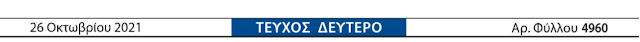 Διαβάστε το Φ.Ε.Κ Τεύχος B’ 4960/26.10.2021: