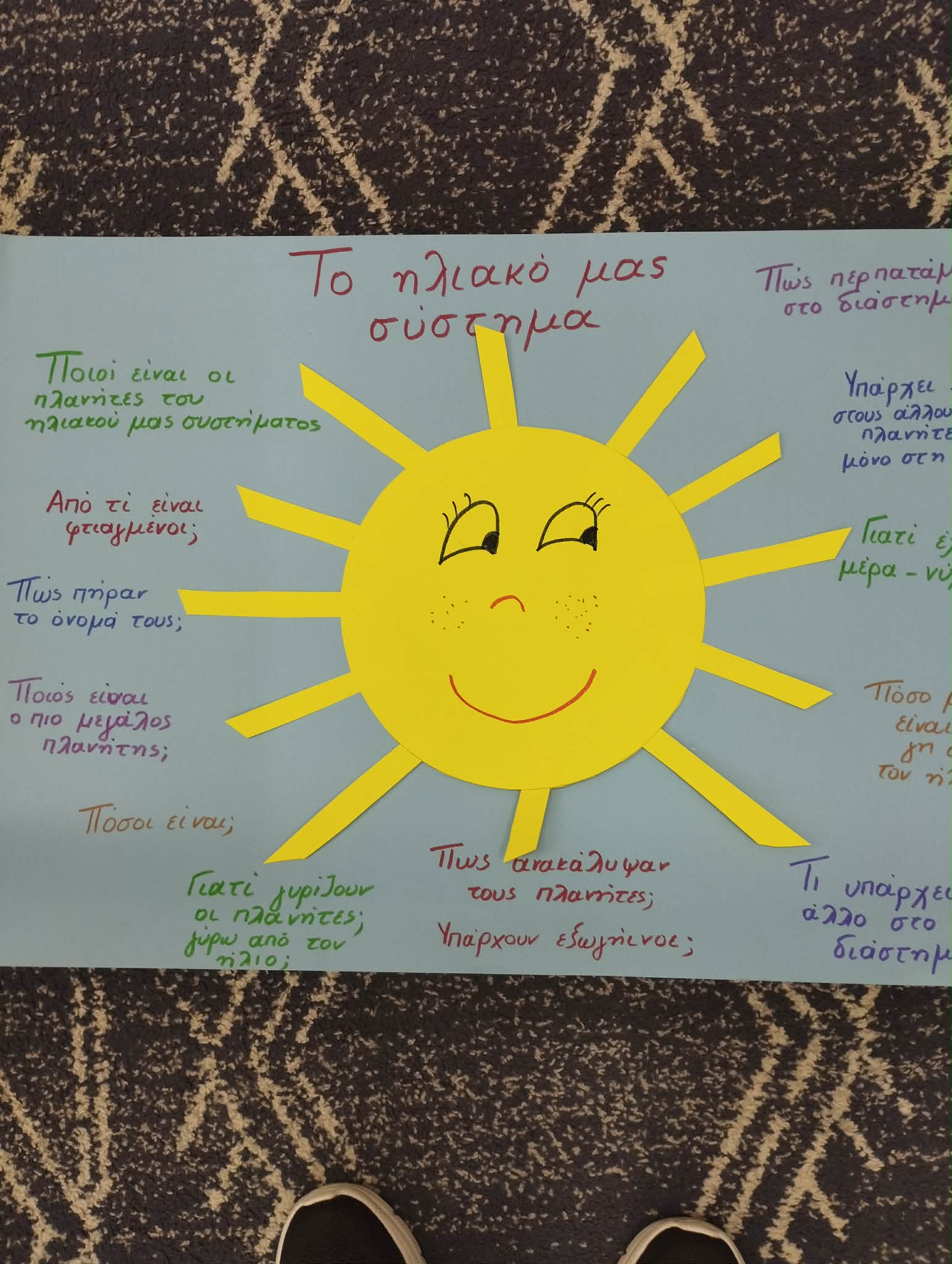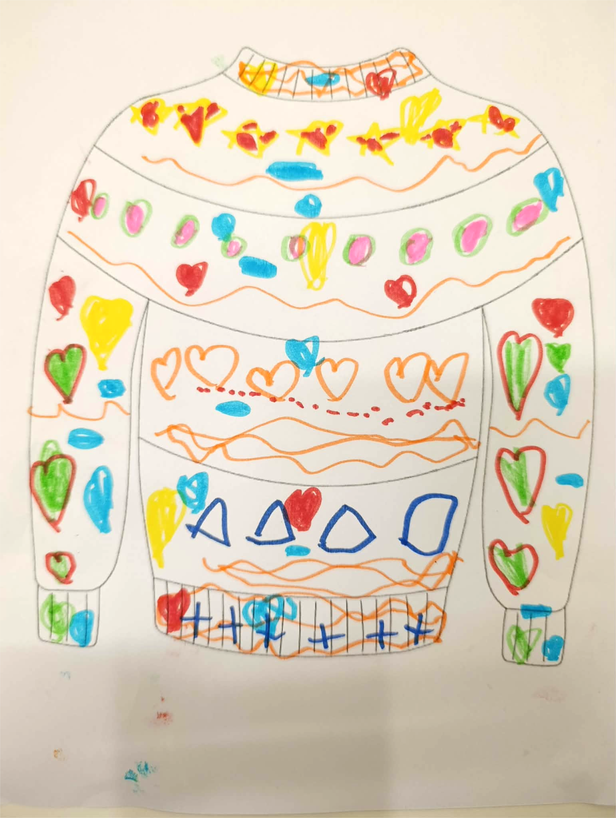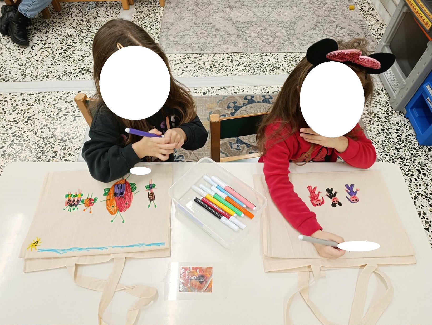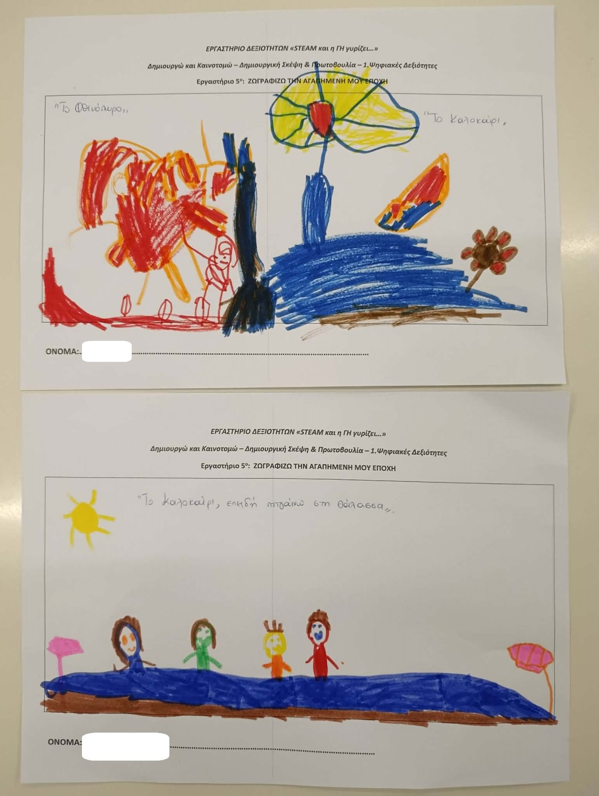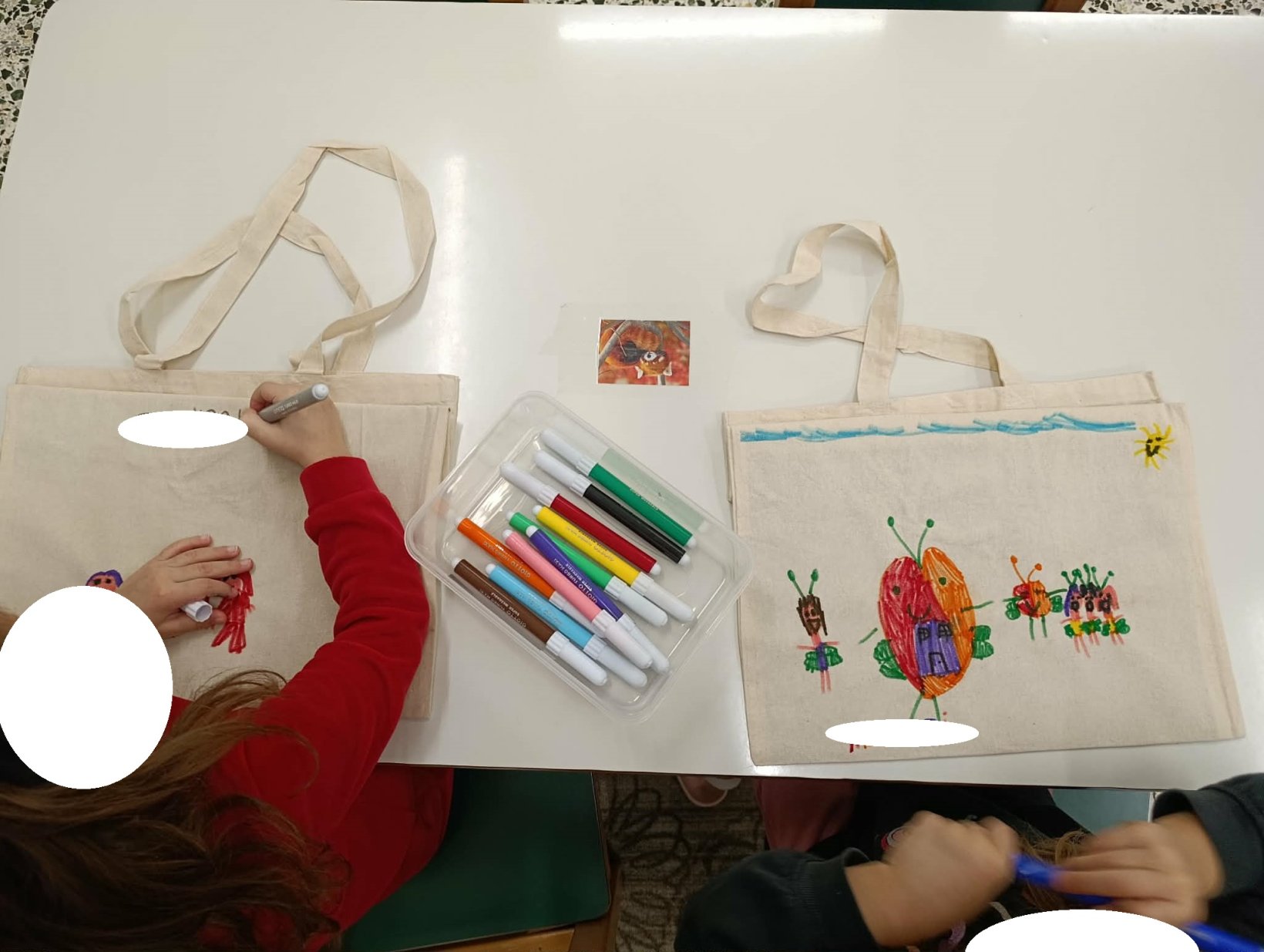 Στη συνέχεια, οι μικροί μας μαθητές αποτύπωσαν τις σκέψεις και τα συναισθήματά τους μέσα από τη ζωγραφική. Ζωγράφισαν τον εαυτό τους με τα αγαπημένα τους πρόσωπα — την οικογένεια, τους φίλους, αλλά και ανθρώπους που τους κάνουν να νιώθουν ασφάλεια και χαρά (ιδέα από το διαδίκτυο).