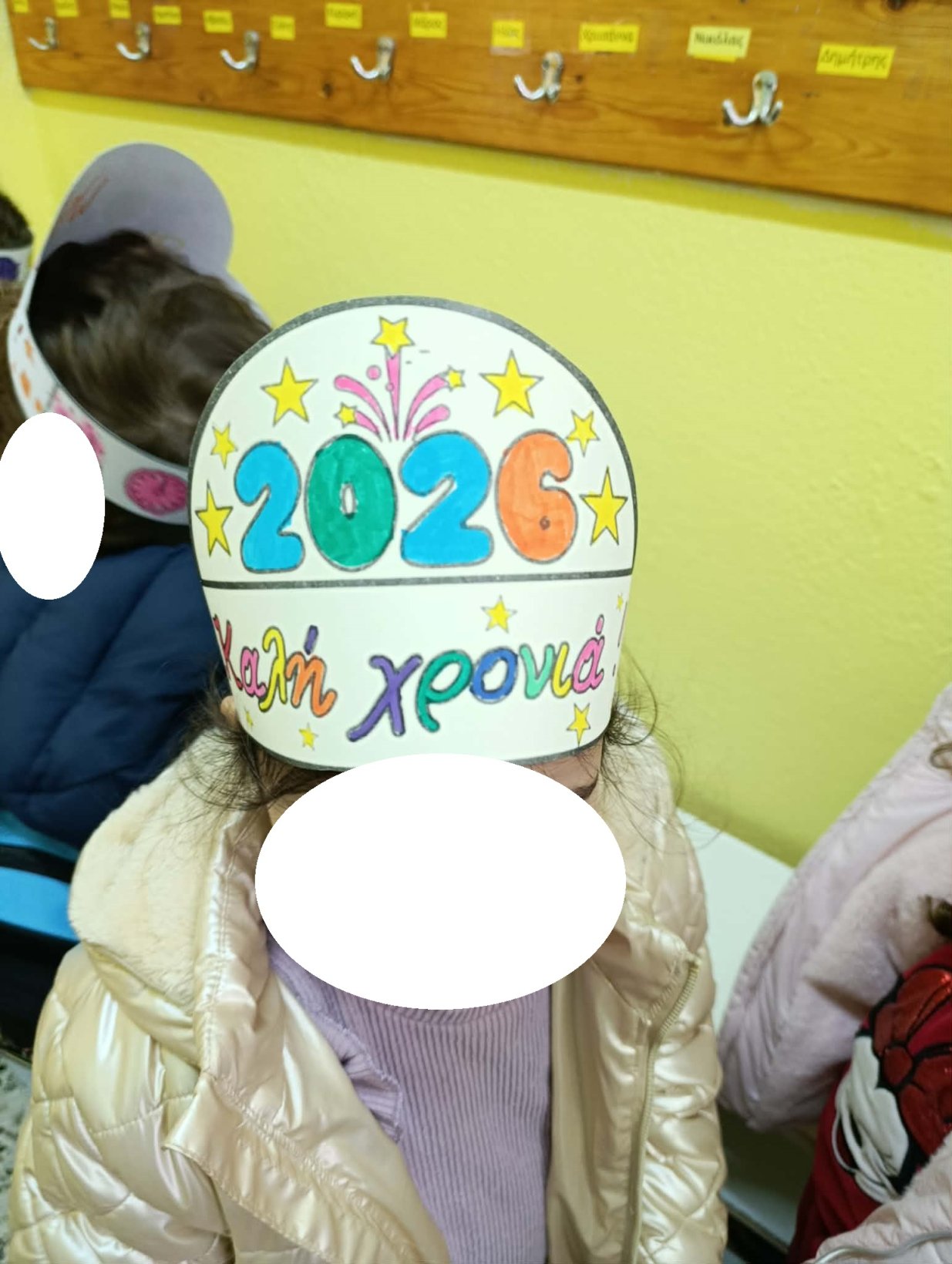 Τα παιδιά ξεκίνησαν φτιάχνοντας το καπέλο του 2026, μπαίνοντας από την πρώτη στιγμή σε γιορτινή διάθεση (πατρόν από το διαδίκτυο).