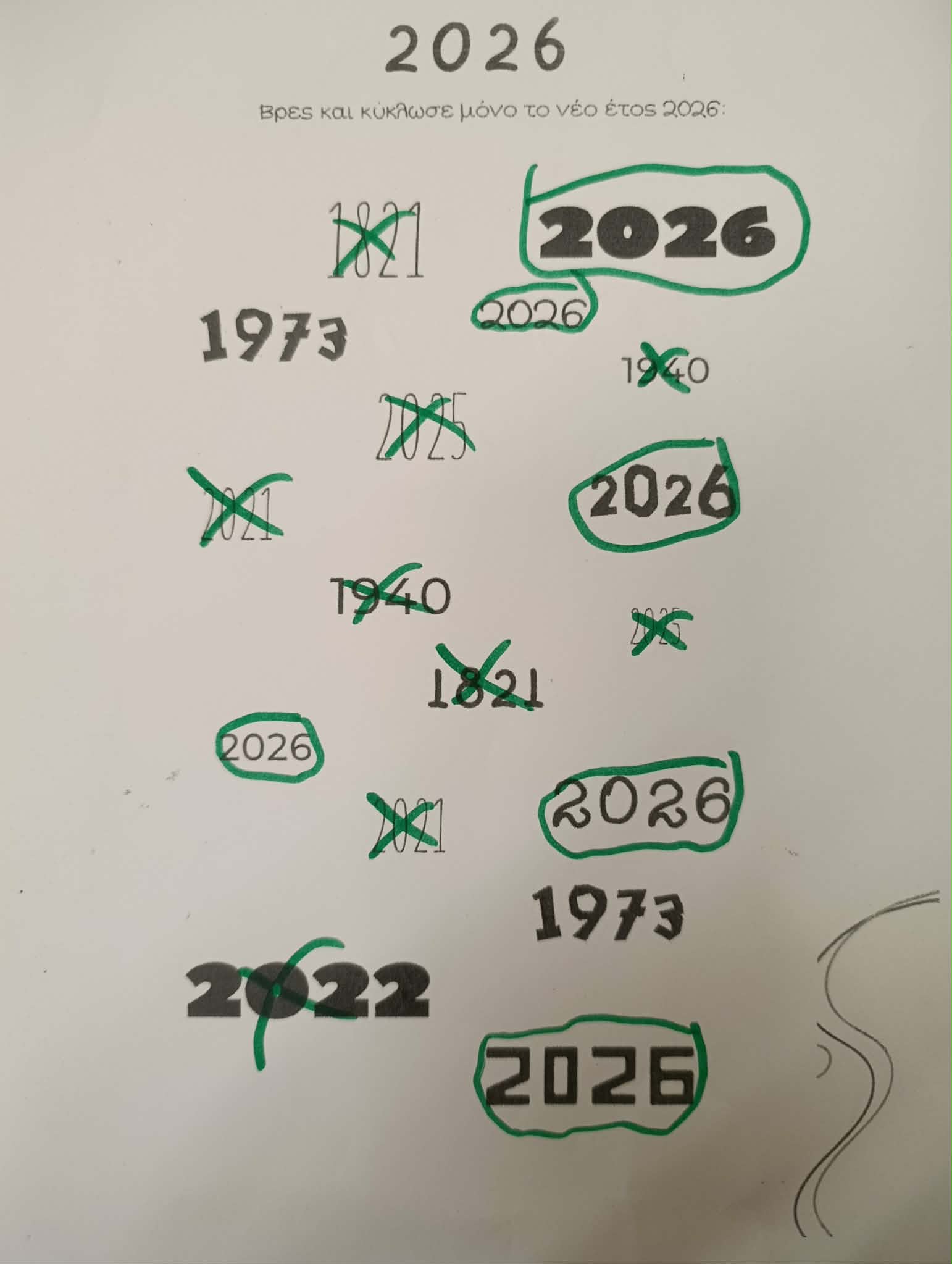 Ασχοληθήκαμε με τη νέα χρονιά και μέσα από μαθηματικές δραστηριότητες: τα παιδιά κατασκεύασαν το 2026 (πατρόν από το διαδίκτυο).
