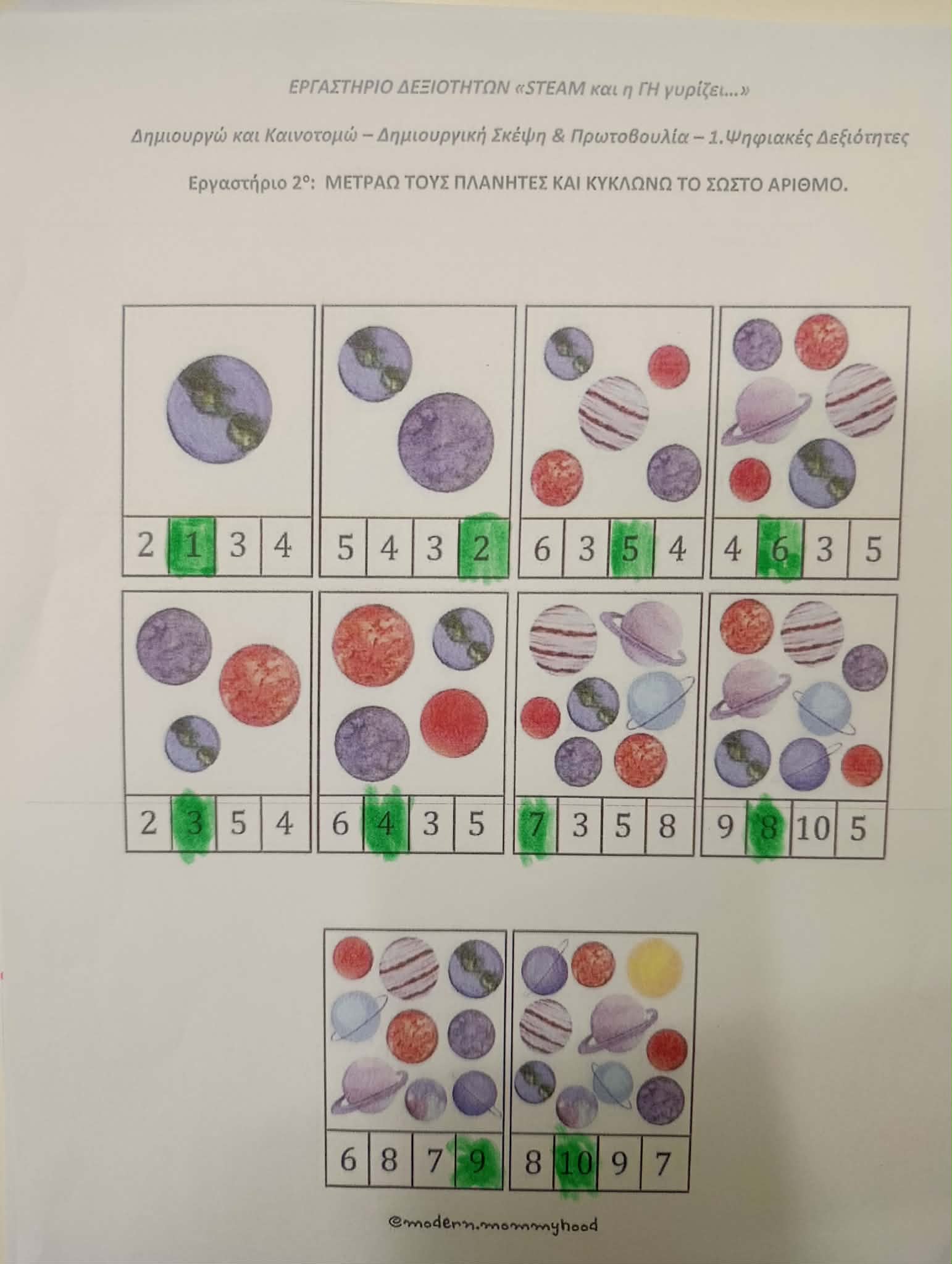 Το αναγνώρισαν και το εντόπισαν σε φύλλα εργασίας, καλλιεργώντας δεξιότητες παρατήρησης και αριθμητικής σκέψης (ιδέα από το διαδίκτυο).