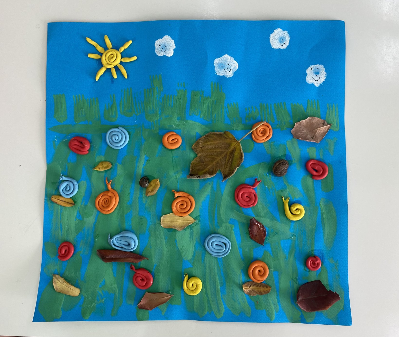 Φτιάξαμε λοιπόν μια ατομική τρισδιάστατη κατασκευή με τίτλο: “Τα σαλιγκάρια στην αυλή μας”