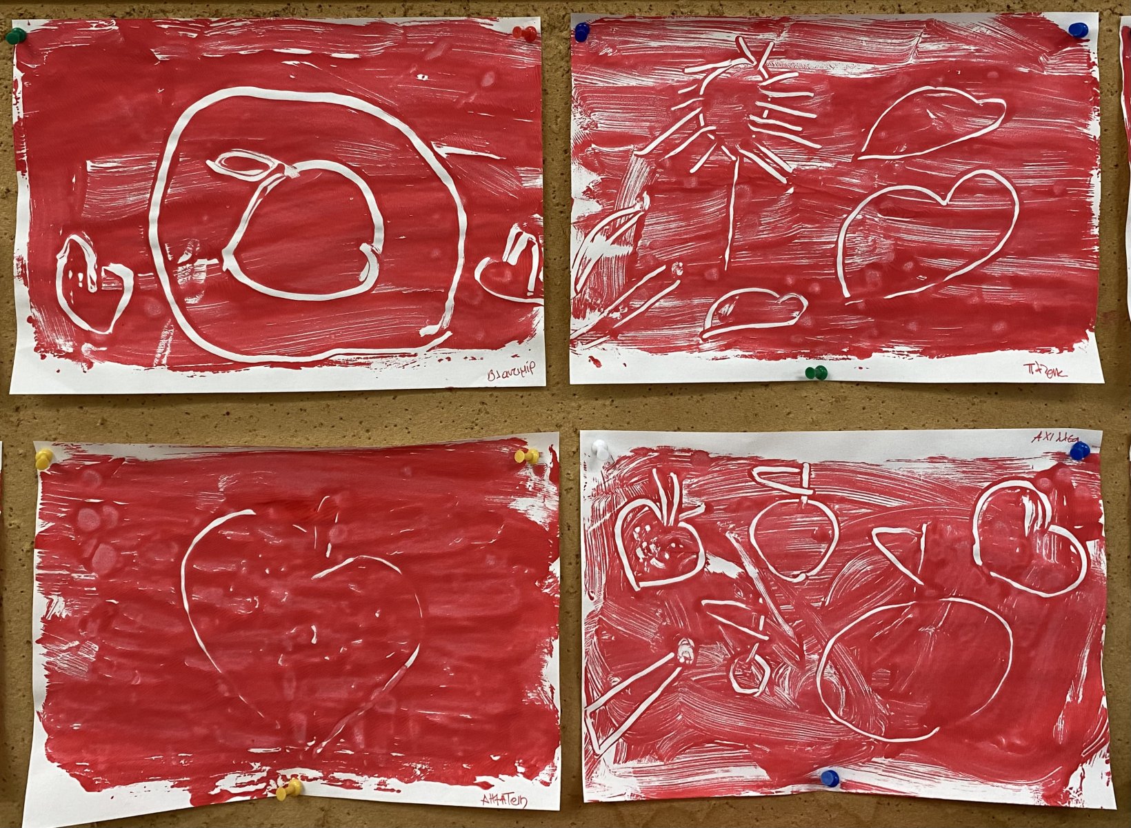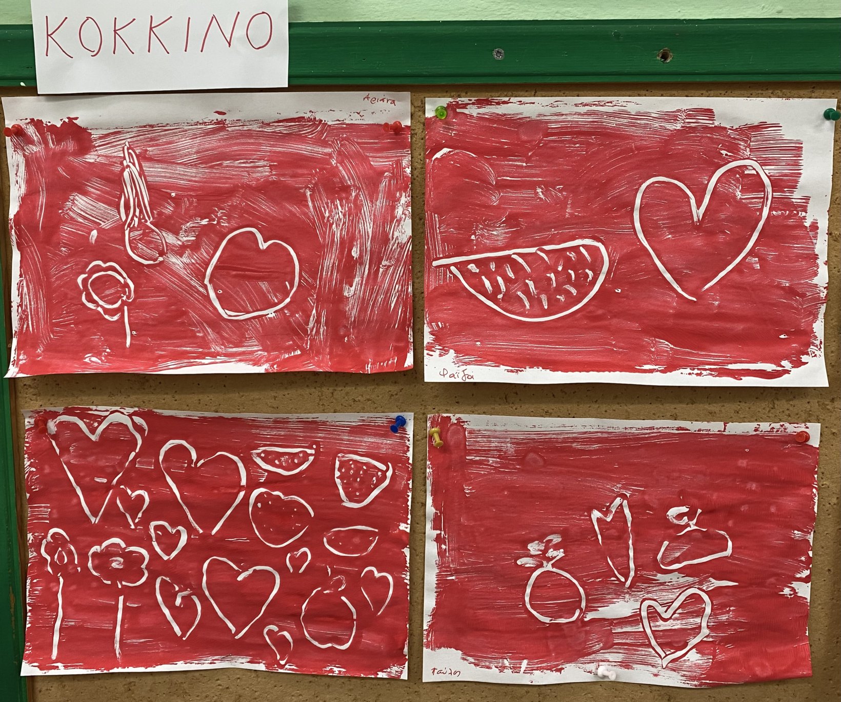 Με την τεχνική της μονοτυπίας φτιάξαμε κατακόκκινα έργα που απεικονίζουν κατακόκκινα πράγματα!