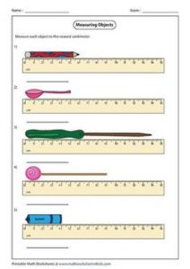 Μετρήσεις μήκους . Δώστε στα παιδιά ένα χάρακα και ζητήστε να μετρήσουν το μήκος μικρών αντικειμένων , έχουμε πραγματοποιήσει τέτοιου είδους μετρήσεις στο νηπιαγωγείο μας , σας παραθέτουμε κάποια φύλλα εργασίας, όπου τα παιδιά μπορούν να συμπληρώσουν το σωστό μήκος δίπλα από κάθε σχέδιο