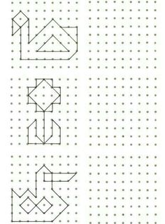 Αναρτούμε διάφορα σχέδια όπου μετρώντας μπορούν να τα δημιουργήσουν στο χαρτί τους τα νήπια . Μπορείτε είτε να τα εκτυπώσετε είτε να σχεδιάσετε εσείς στο σπίτι δίνοντας το πρωτότυπο στα παιδιά με στόχο να αντιγράψουν μετρώντας το γεωμετρικό σχέδιο