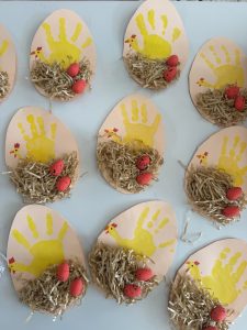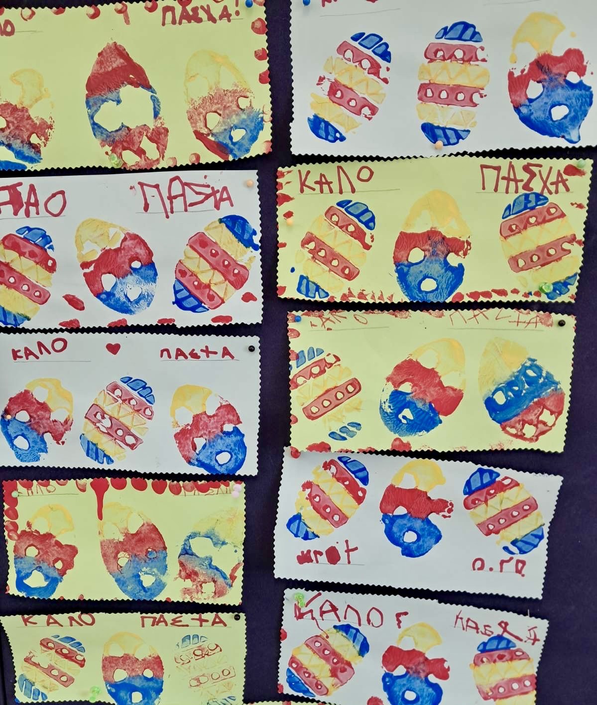 Στο ελεύθερο παιχνίδι, τα παιδιά δεν σταματούσαν τις πασχαλινές δημιουργίες. Ζωγράφιζαν λαγούς , κότες, αβγά και έφτιαχναν όμορφες κατασκευές, κολλάζ…