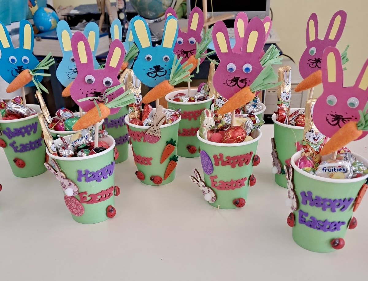 Τα παιδιά δεν θα μπορούσανε να φύγουν για τις διακοπές του Πάσχα χωρίς το καλαθάκι τους γεμάτο πασχαλινές λιχουδιές αλλά και μια κάρτα με πολλή αγάπη!