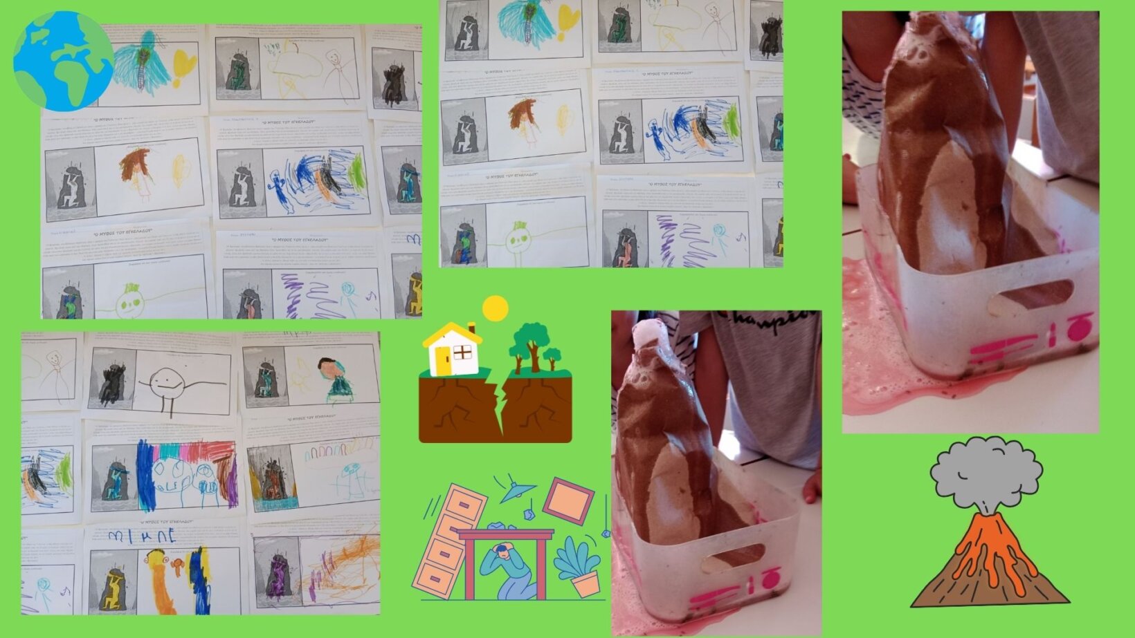 Συζητήσαμε με τα παιδιά τι είναι σεισμός. Κάποιες φορές νιώθουμε τη γη να κουνιέται, τότε γίνεται σεισμός. Μιλήσαμε για τις πλάκες, για τα ηφαίστεια (κάναμε και το σχετικό πείραμα) και τον Εγκέλαδο. Ο σεισμός γίνεται ξαφνικά οπότε πρέπει να είμαστε πάντα προετοιμασμένοι.