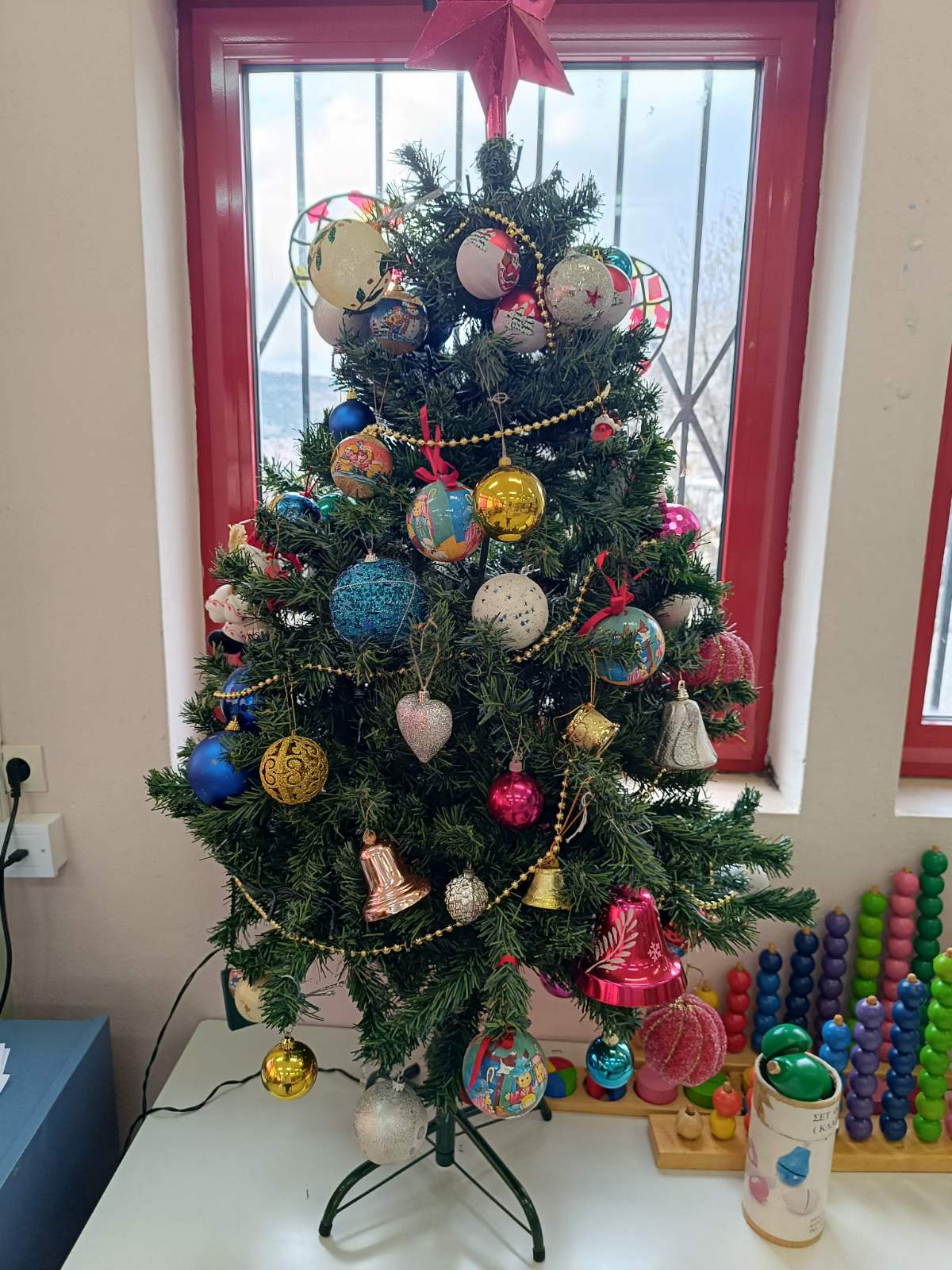 Ξεκινήσαμε την εορταστική περίοδο των Χριστουγέννων στο σχολείο μας στολίζοντας το δέντρο μας. Όλοι μαζί με μεγάλη χαρά και ενθουσιασμό κρεμάσαμε τα στολίδια στο δέντρο μας, ανάψαμε τα φωτάκια του, διακοσμήσαμε τις πόρτες και το σχολείο μας και περιμένουμε γεμάτοι προσμονή τα Χριστούγεννα!