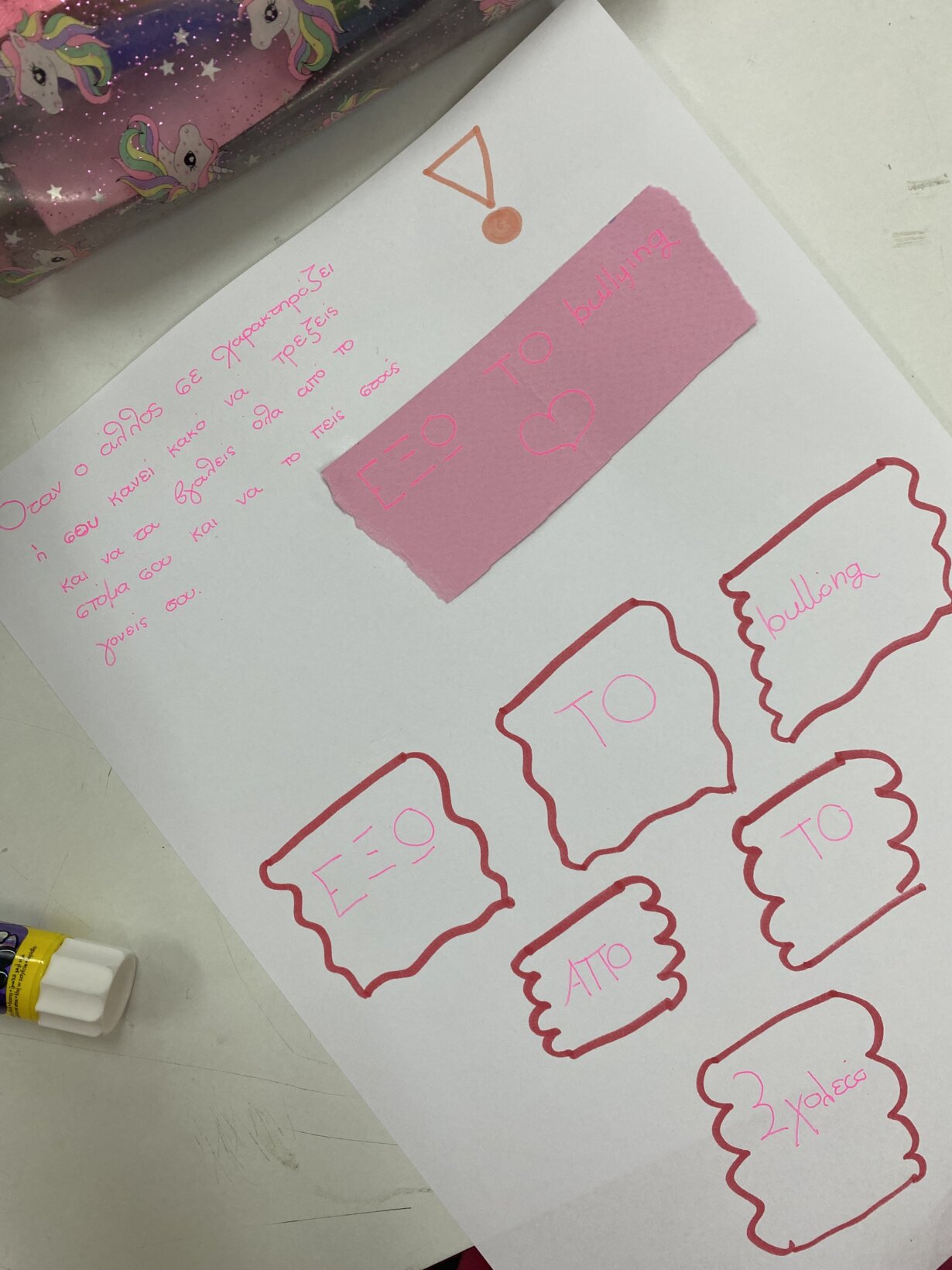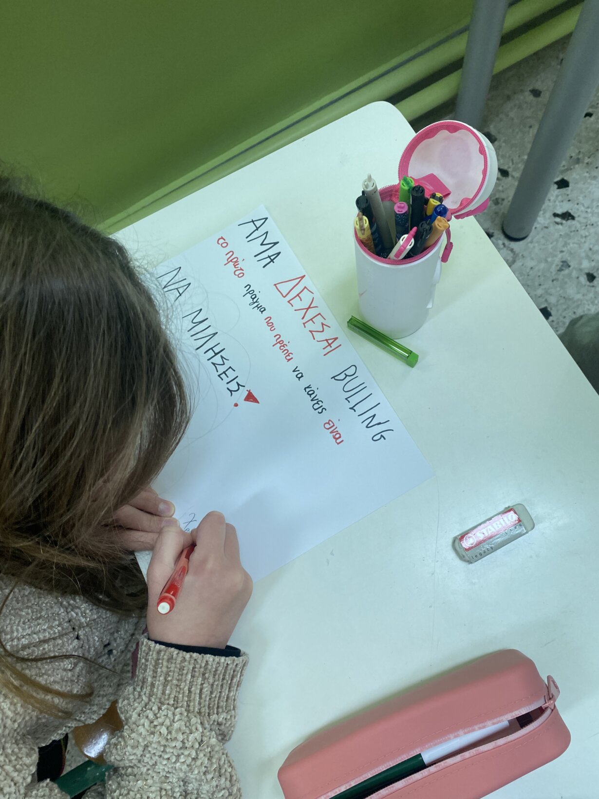 Την Παρασκευή 7, Μαρτίου 2025, με αφορμή την παγκόσμια ημέρα κατά του σχολικού εκφοβισμού( 6η Μαρτίου), οι μαθητές όλων των τάξεων συζήτησαν για το σημαντικό αυτό θέμα και υλοποίησαν διάφορες δράσεις.