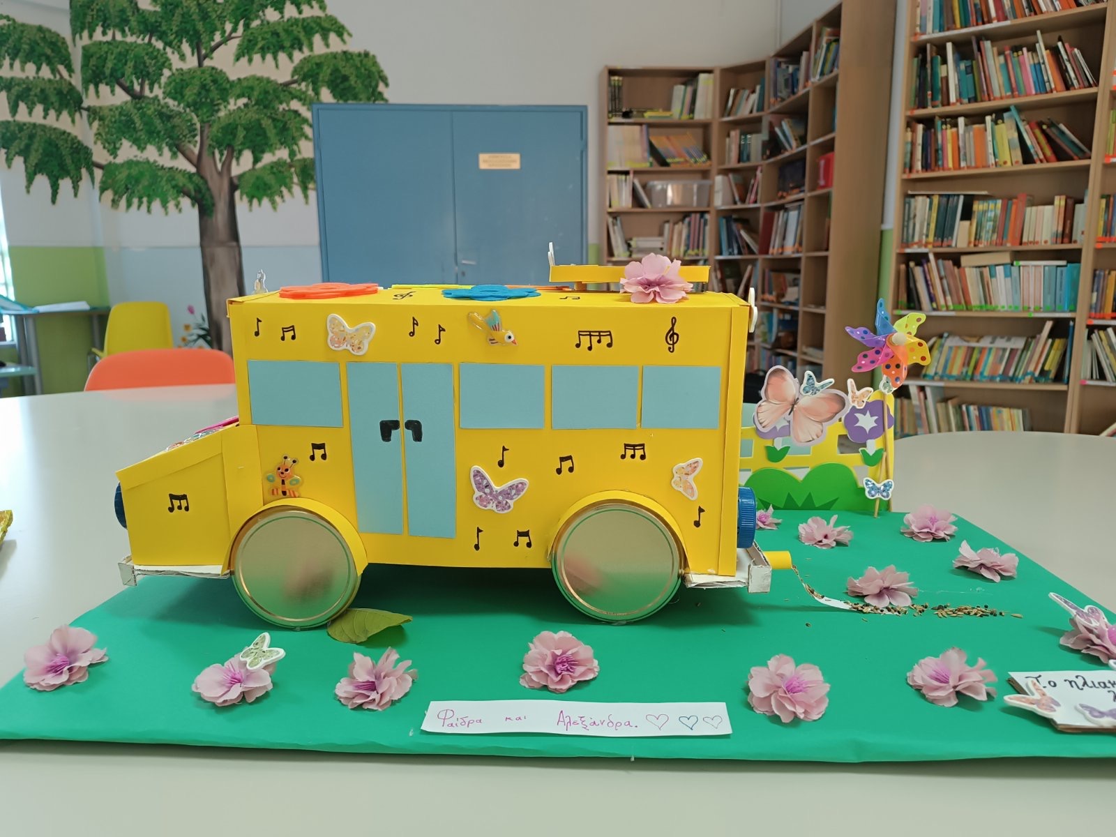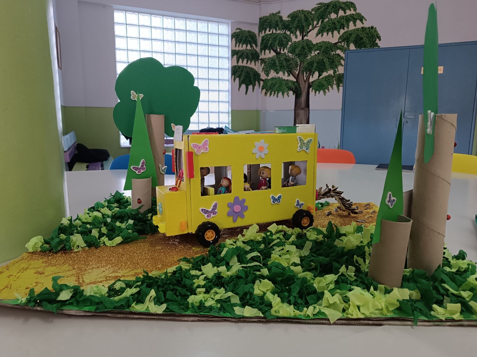 Στο μάθημα της γλώσσας οι μαθητές της Γ1 τάξης του σχολείου μας δημιούργησαν το δικό τους λεωφορείο στο χώρο του παραμυθιού. Έπειτα από το κείμενο της Λιλιπούπολης επέλεξαν να κατασκευάσουν το δικό τους λεωφορείο. Η δραστηριότητα αυτή εντάσσεται και στο πλαίσιο του οικολογικού σχολείου.
