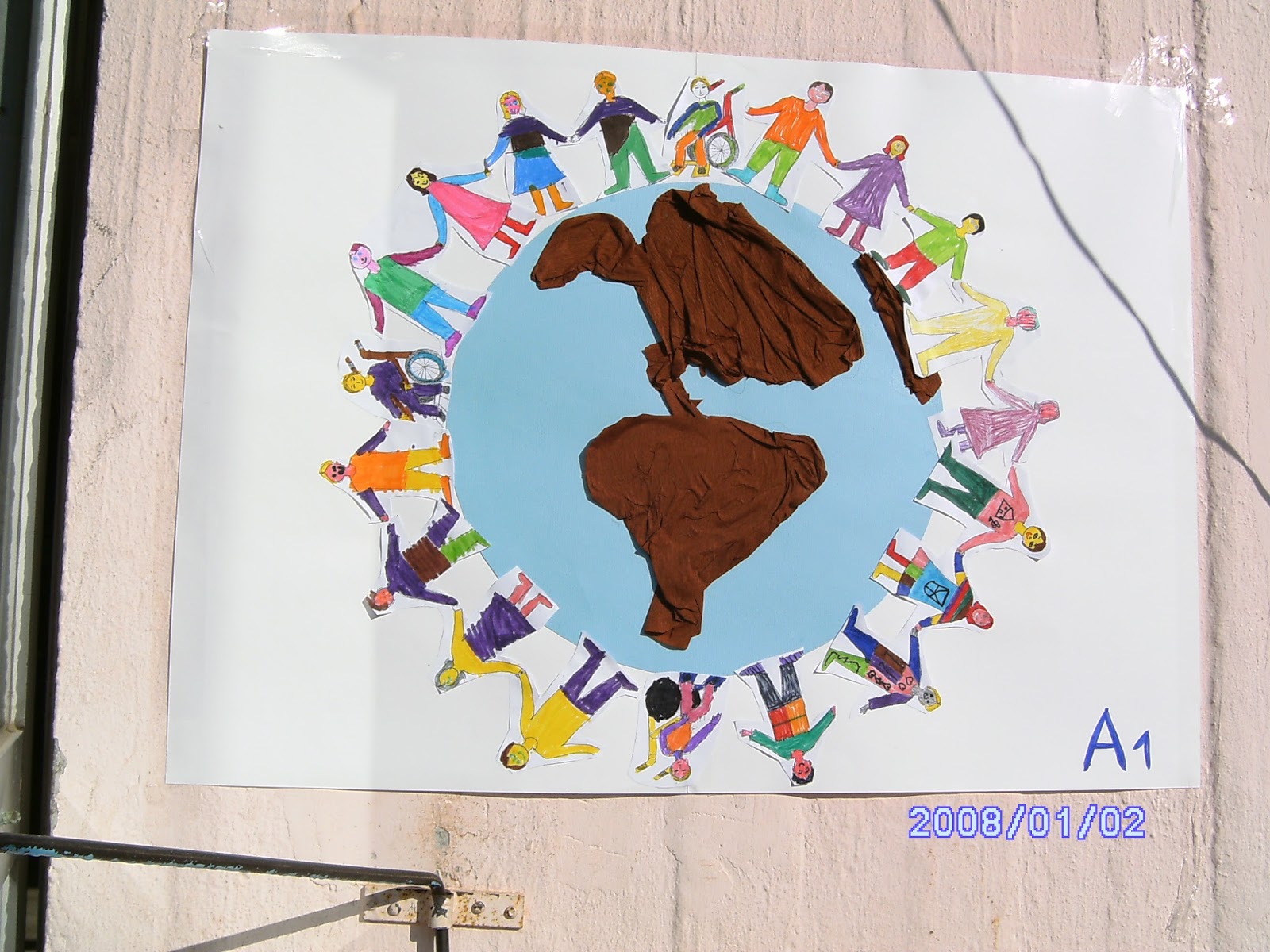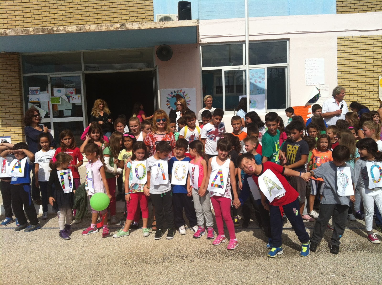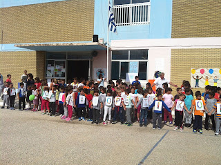 Στην εκδήλωση συμμετείχαν όλες οι τάξεις και στο τέλος τα πρωτάκια κάνοντας μια τεράστια αγκαλιά σχημάτισαν τις λέξεις : ΟΛΟΙ ΔΙΑΦΟΡΕΤΙΚΟΙ ΟΛΟΙ ΙΣΟΙ και ΑΓΑΠΗ, ΦΙΛΙΑ…